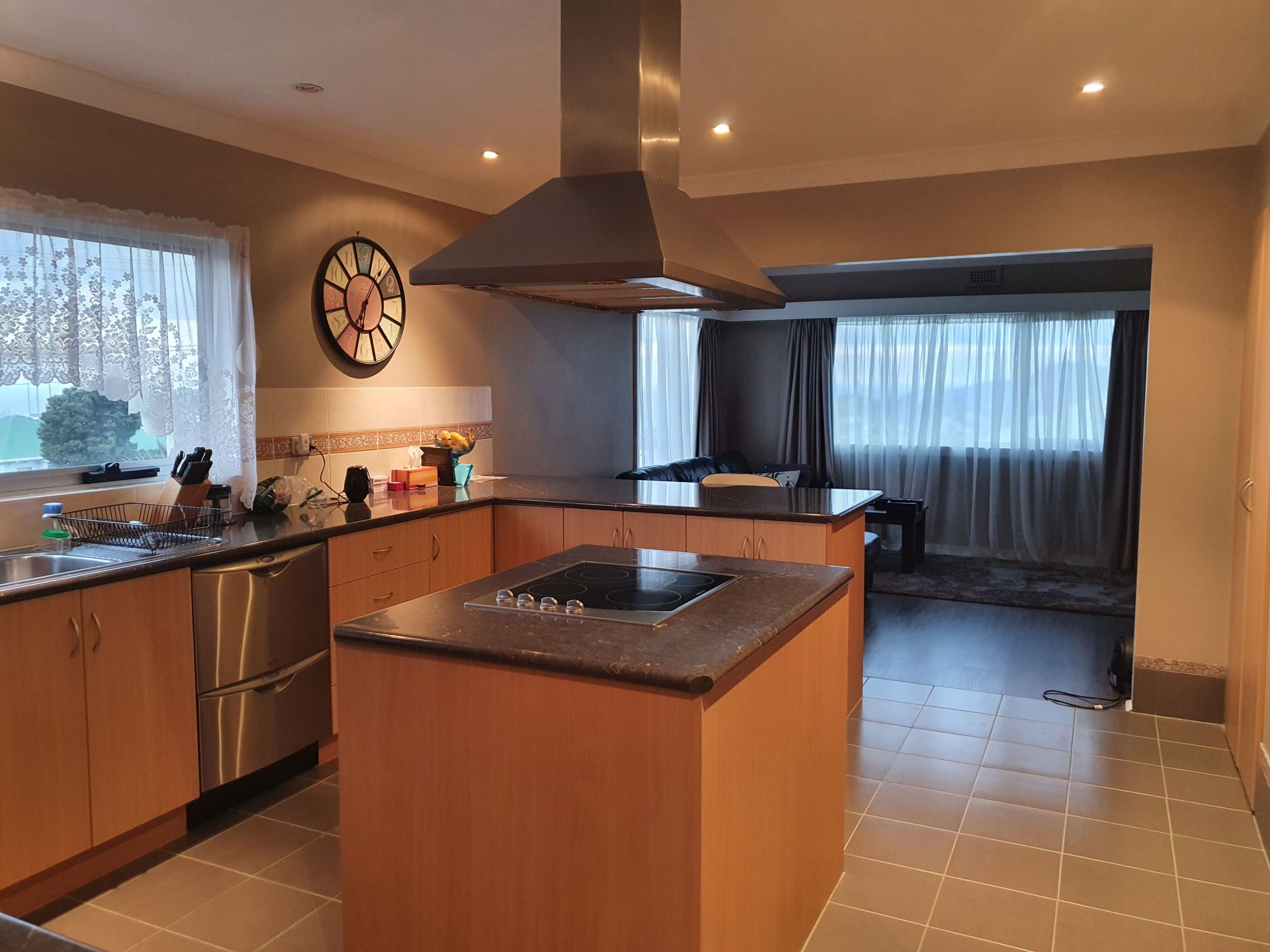The Dining room is off the large open plan kitchen which has an island bench and includes a stainless steel fan forced oven ,ceramic cook top and range hood . The kitchen also has stainless steel dish drawers to make doing the dishes a breeze and views towards Bass Strait.