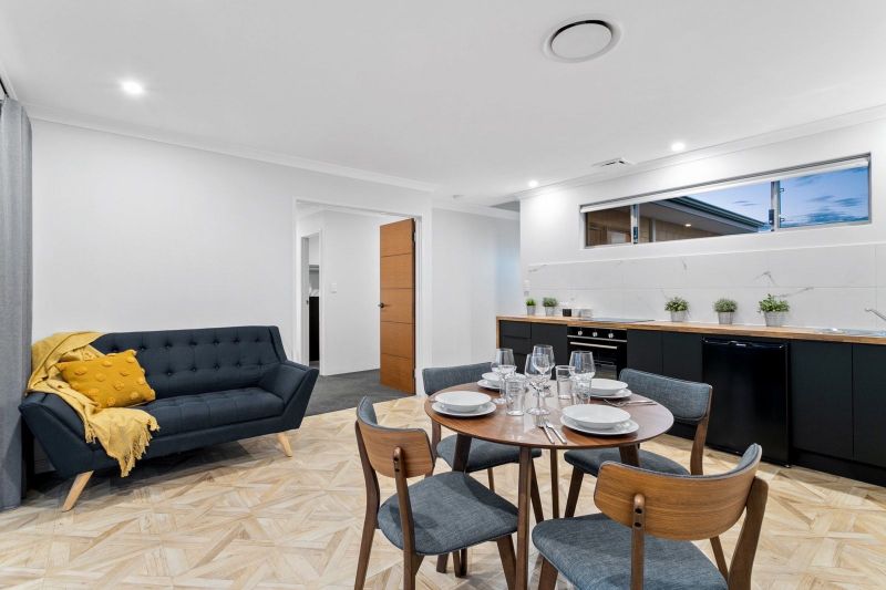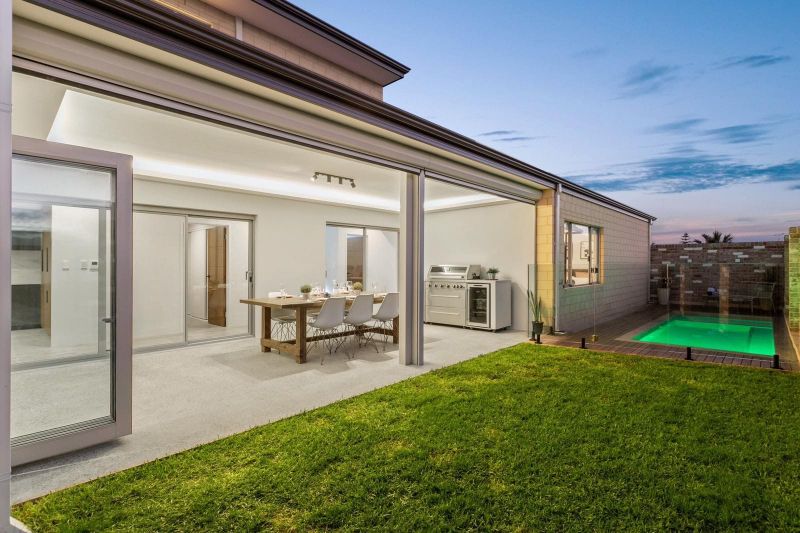 Bifold doors open up the living area to the alfresco, the perfect entertaining area, and a great spot to watch the kids in the pool. Three bedrooms and bathroom with seperate toilet complete this floor.