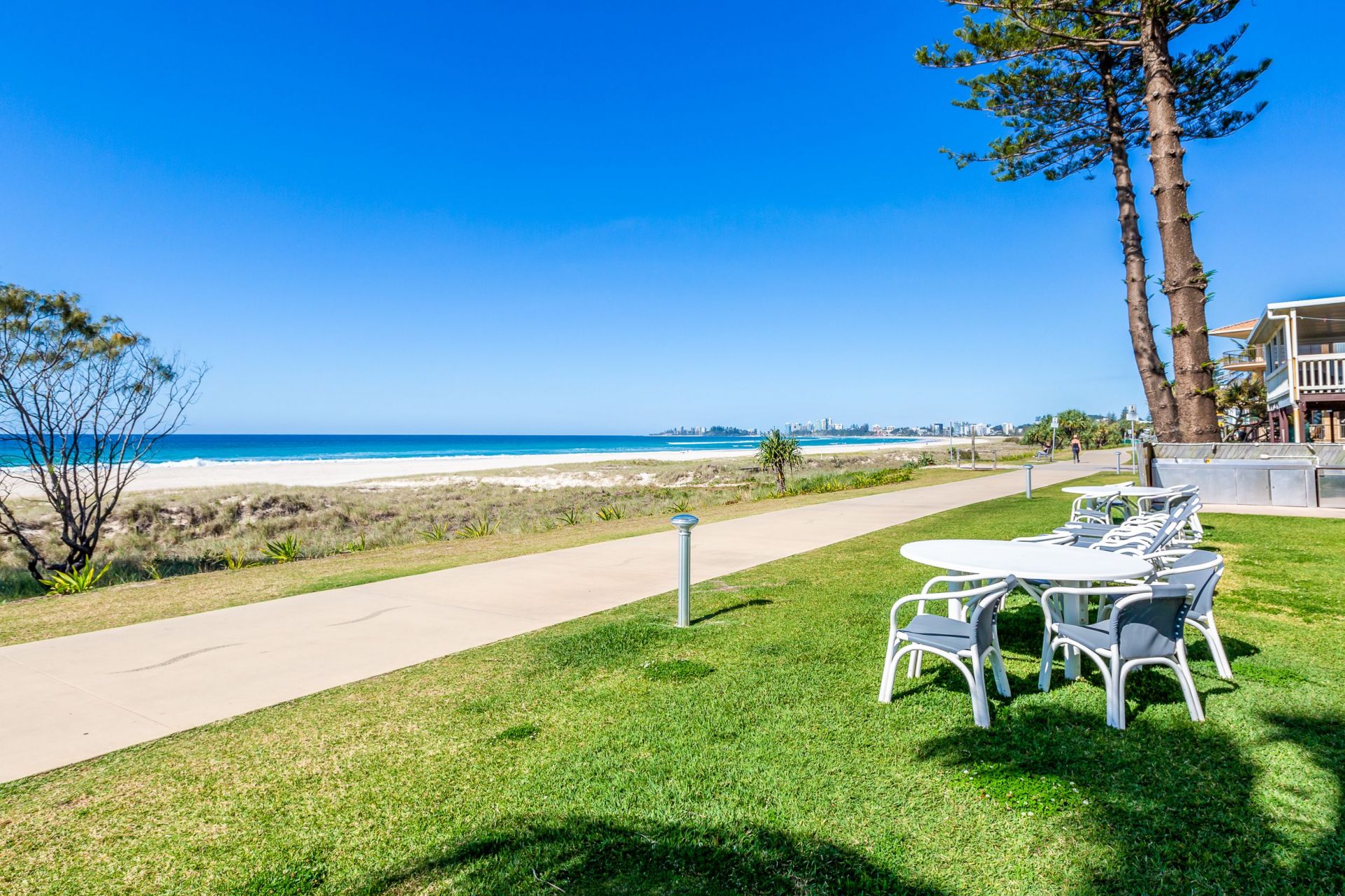 Set in a small resort complex of 17, this apartment is perfectly situated to maximise access to the pristine, wide beaches of the southern Gold Coast. Take just a few steps from your door and stroll along the beach, or cycle the beachside pathway, south through Kirra to Coolangatta and beyond, or north to Tugun and Currumbin. You will be spoiled with opportunities for recreation and dining, all within easy reach.