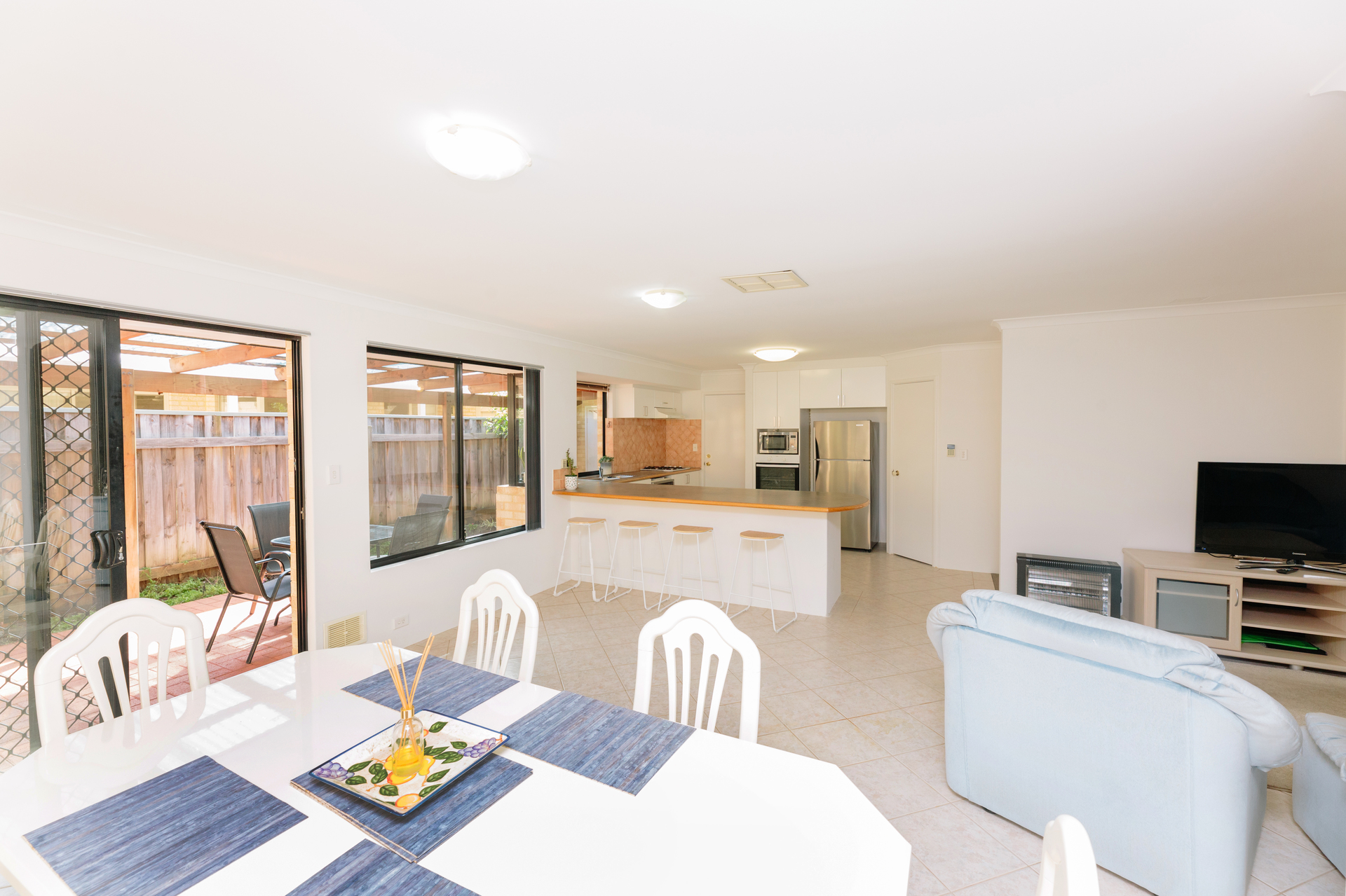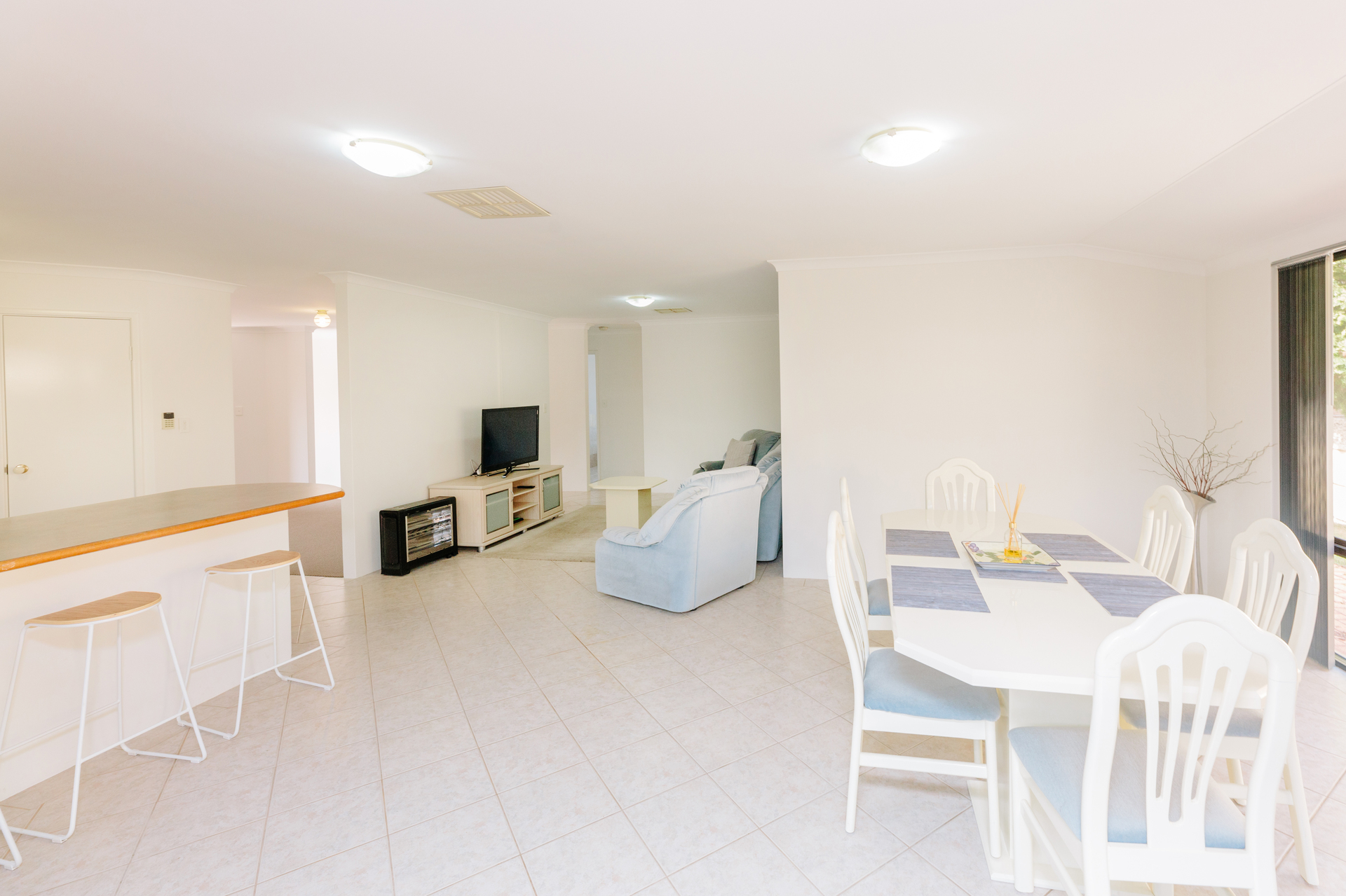 Open plan Kitchen (with Large Breakfast counter), Dining and Lounge area and walk-in pantry.