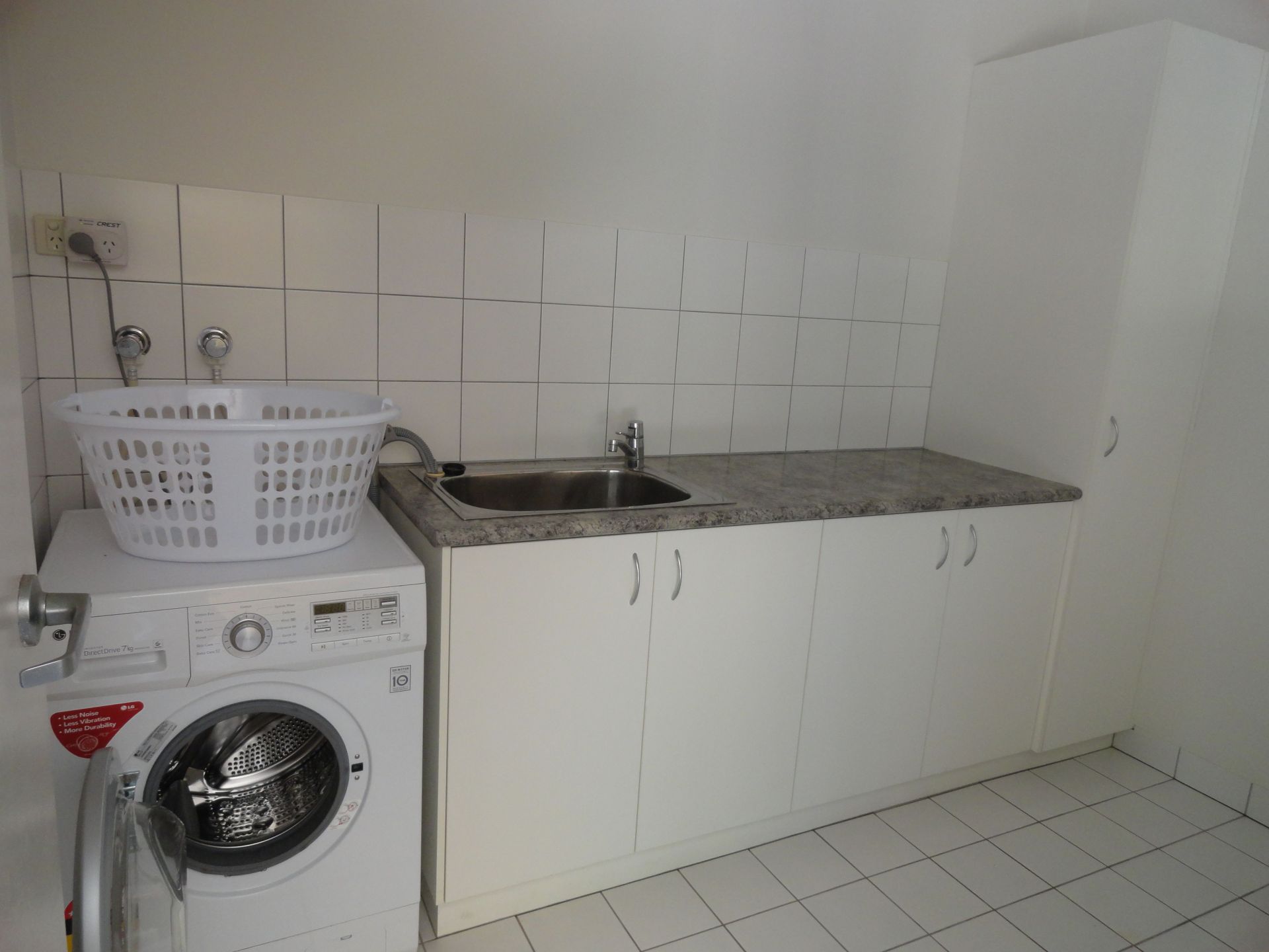 Compact and tidy, the house has all you need. All tiled and airconditioned with open plan living, 2 good-sized bedrooms and combined bathroom. There are overhead cupboards adding to storage in the kitchen as well as built-ins in the bedrooms and a good sized linen press.