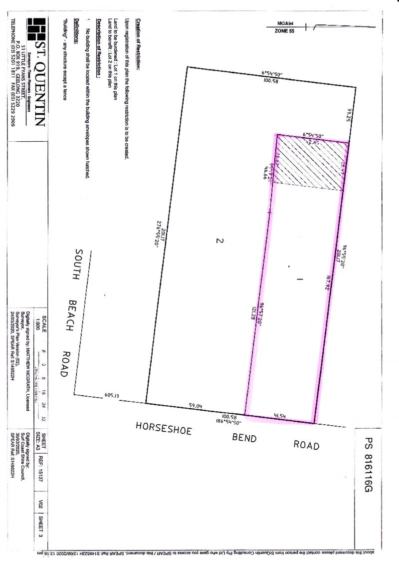There are well established native trees providing screening right along the frontage to Horseshoe Bend Road and some mature gum trees on the property giving character to the land. The area is flat for building economy and there is an possibly opportunity to glimpse ocean views from a 2nd storey.