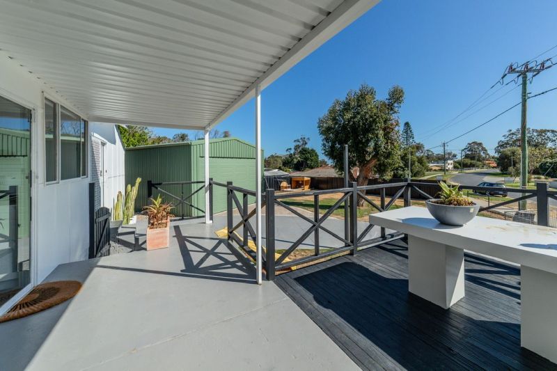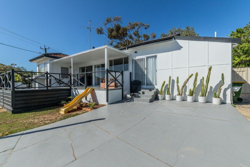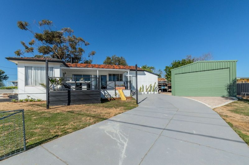 Approaching the front of the property from Thera street is a large 6x8m powered workshop/tall boat shed to the right and residence to the left. Entering the home, there is a large elevated front deck with shade sail that overlooks down Thera street towards Falcon Bay. With the home perfectly facing north it allows the winter sun to light up all main bedrooms and living area, keeping the home cool during summer and warm during winter. The home boasts high ceilings, large bedrooms, inbuilt floor to ceiling robes, floor to ceiling block out curtains in all bedrooms and floor to ceiling light filtering curtains in all living areas. The interior of the home has been partially recently renovated and the jarrah floorboards have been resurfaced.