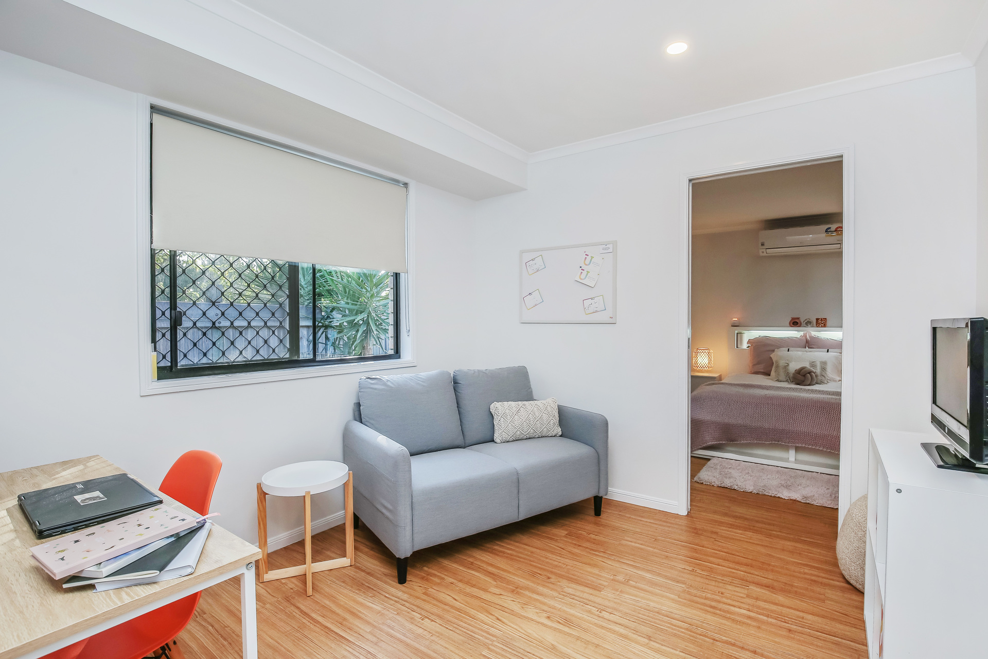 Master bedroom with en-suite, air conditioning, walk-In robe and leading out to the parents garden retreat.