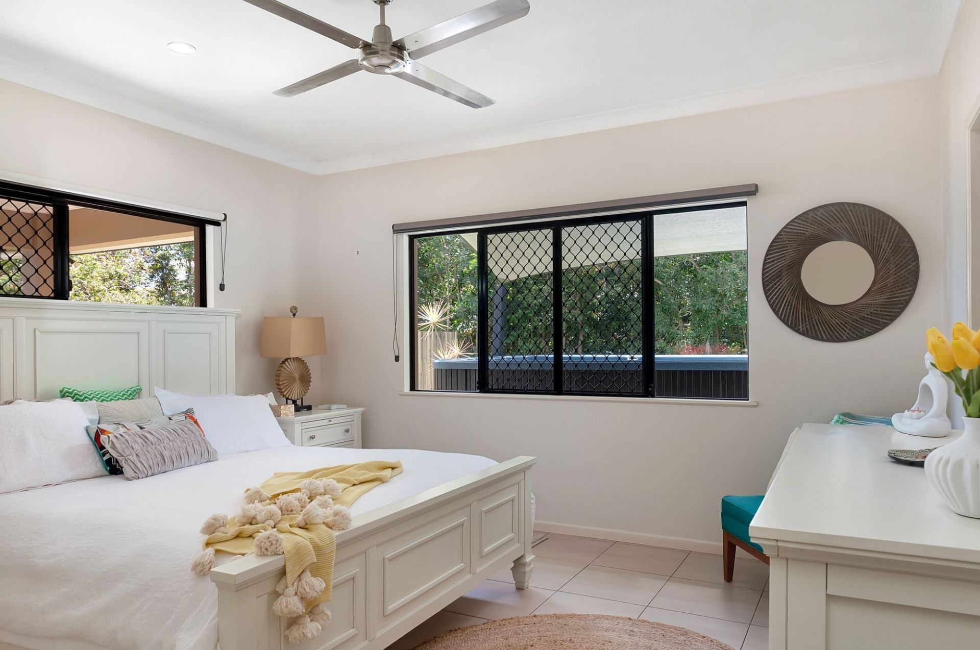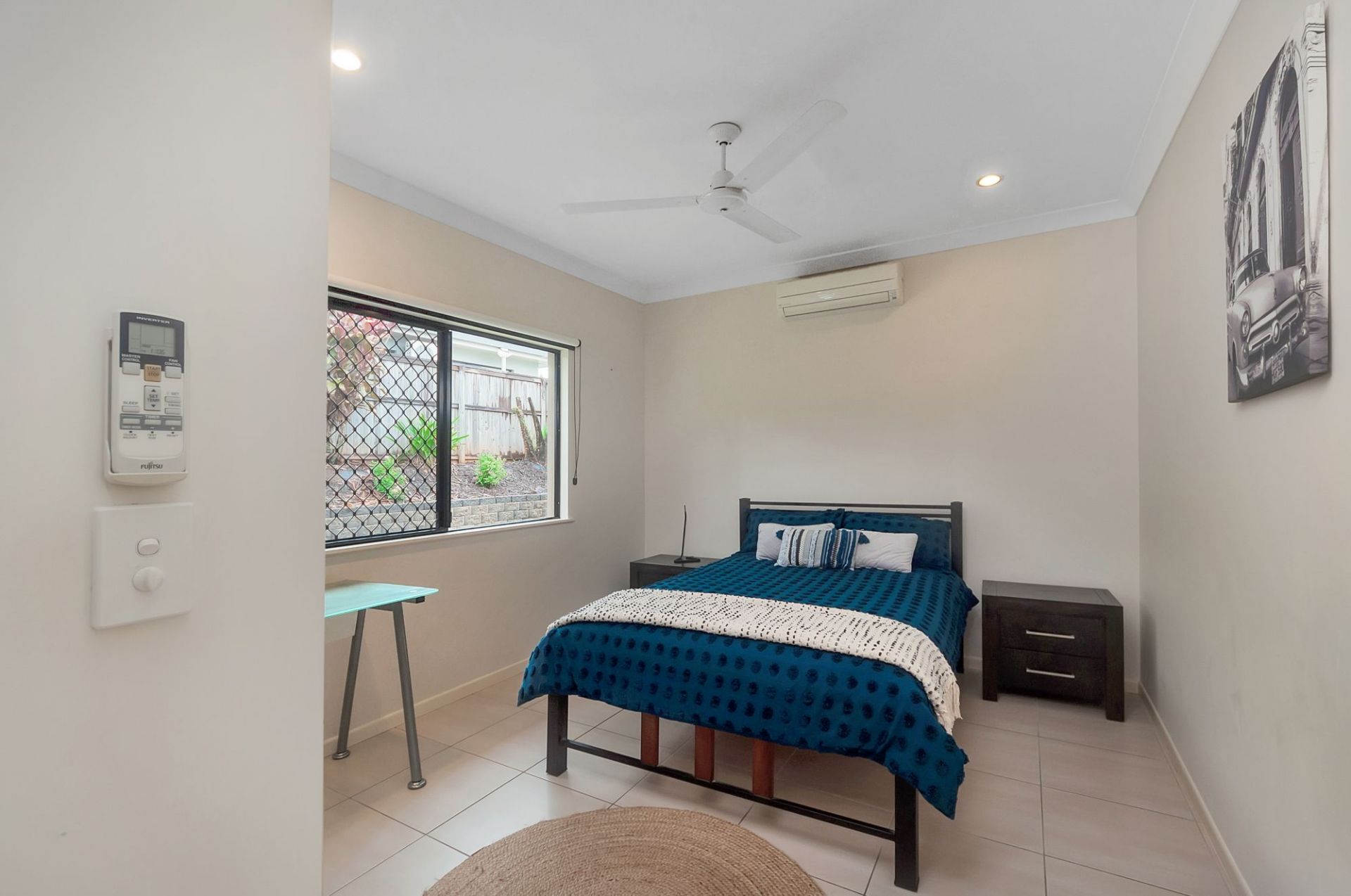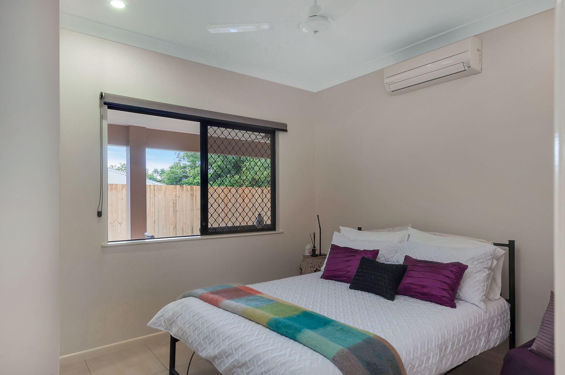 - Fully air-conditioned, security screened and tiled throughout