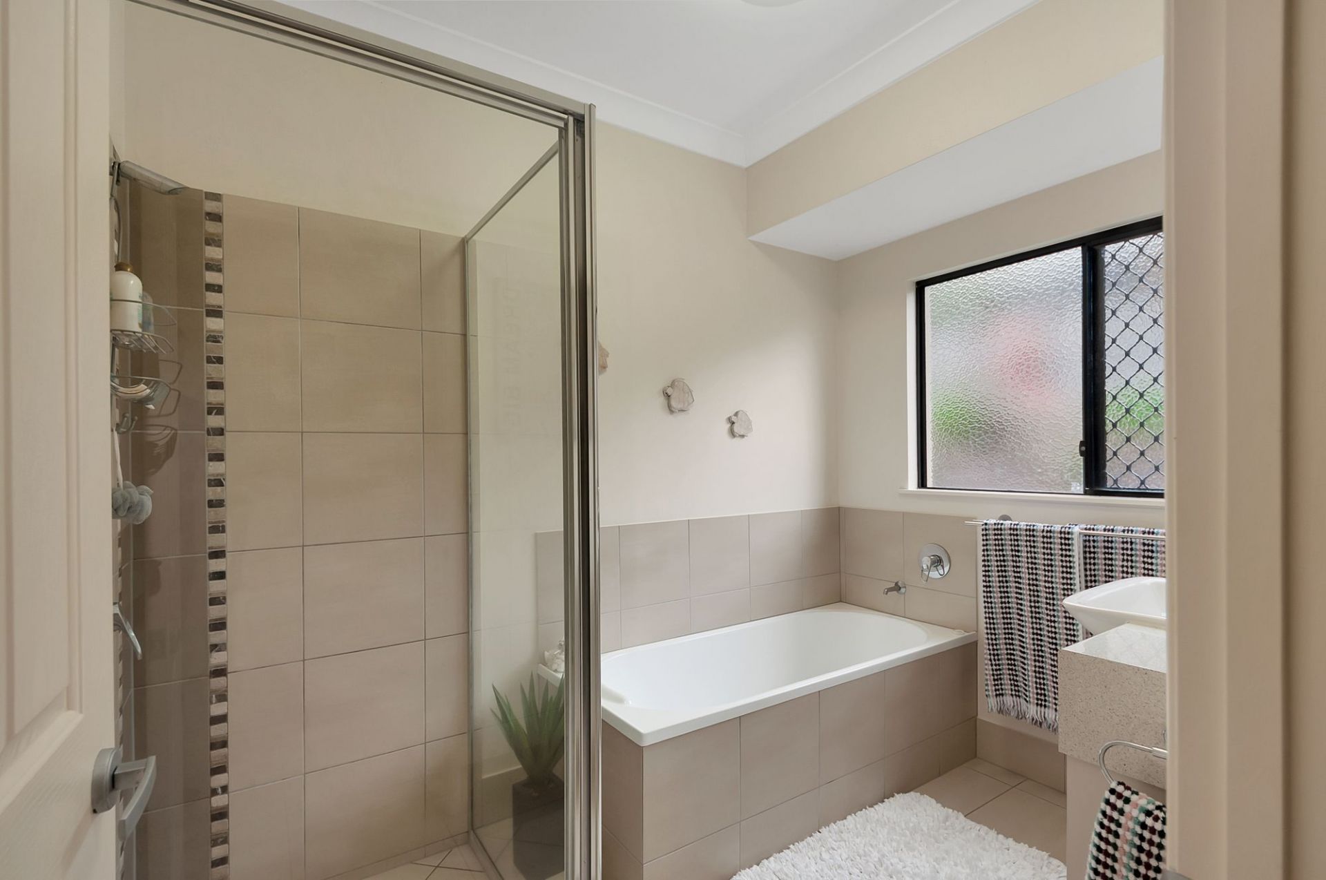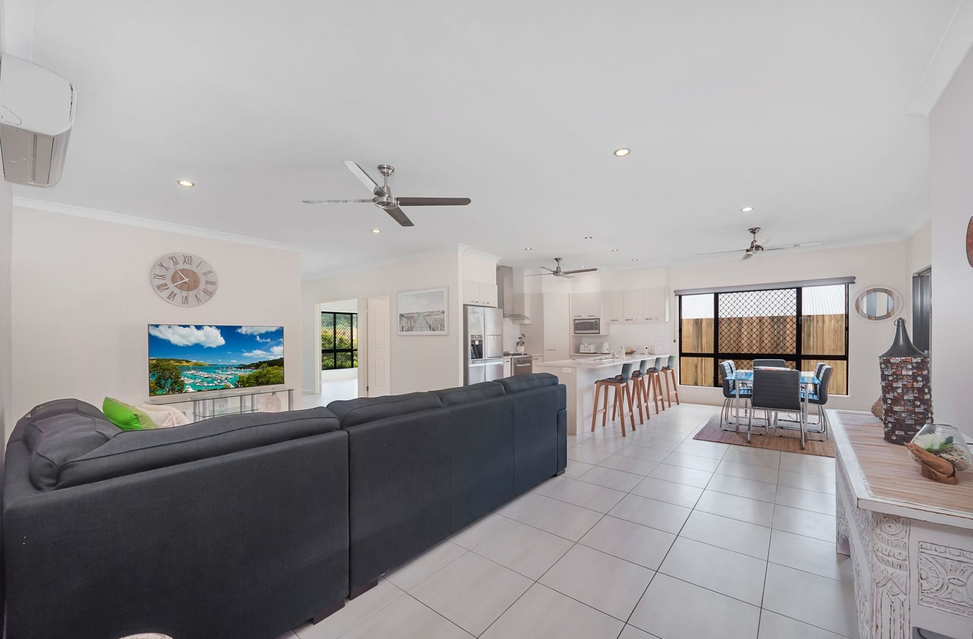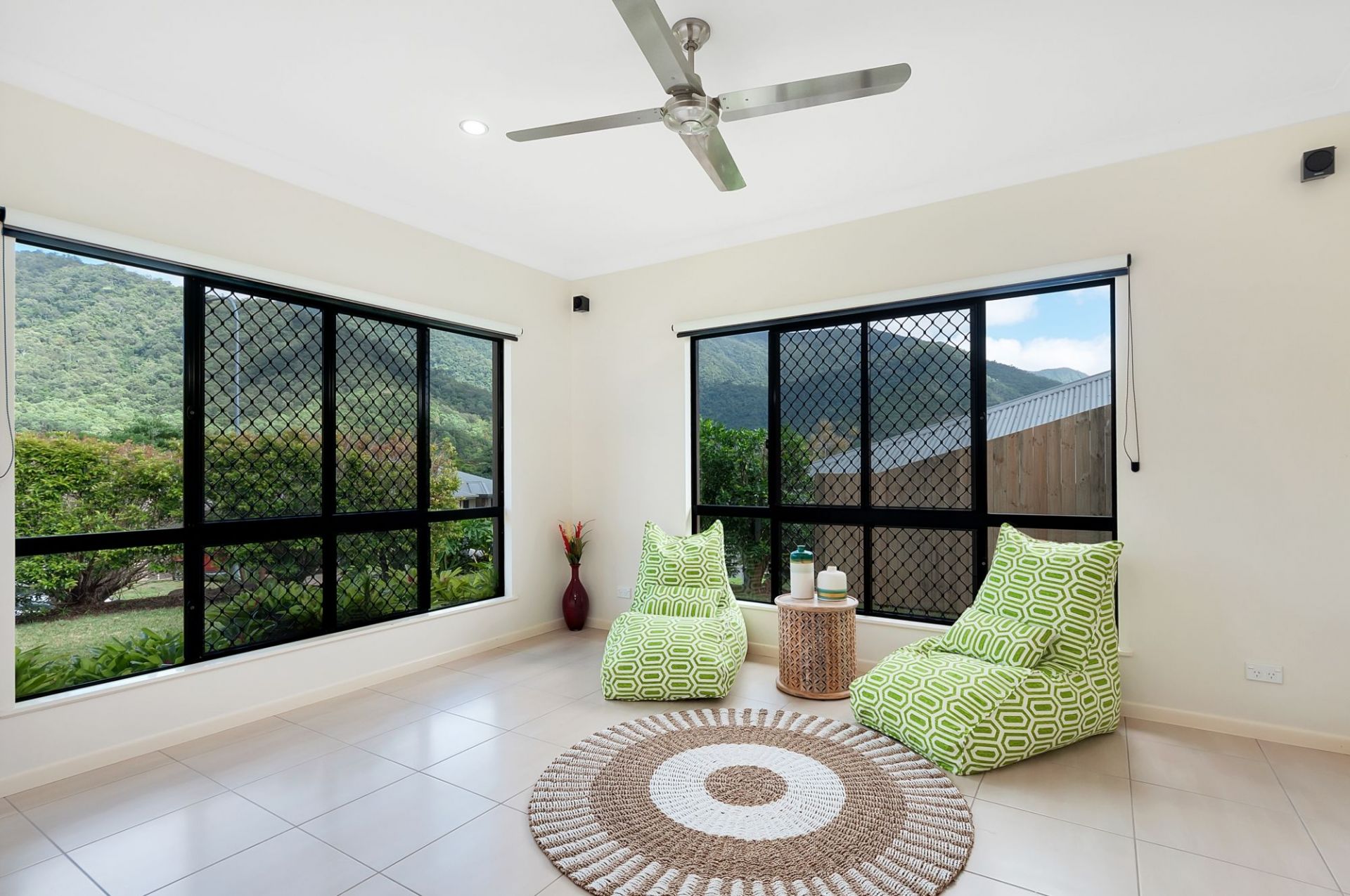 - Fully air-conditioned, security screened and tiled throughout