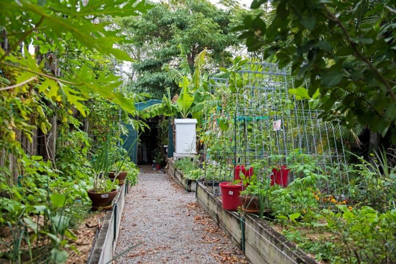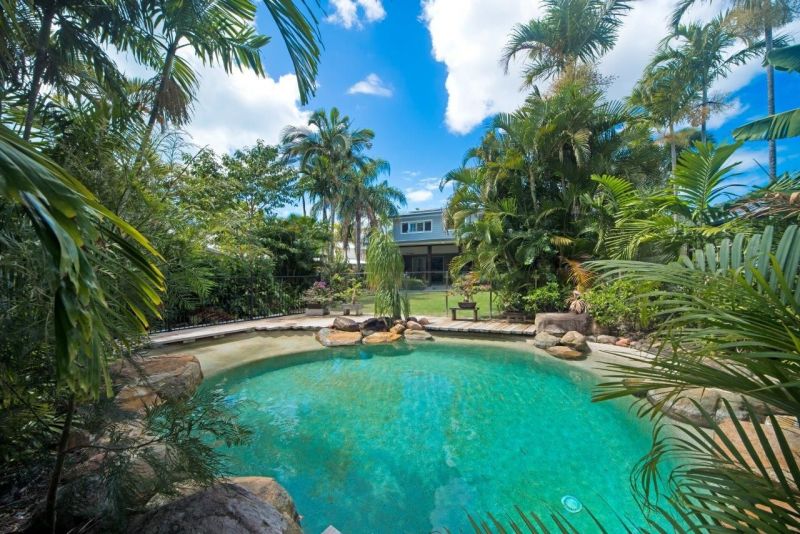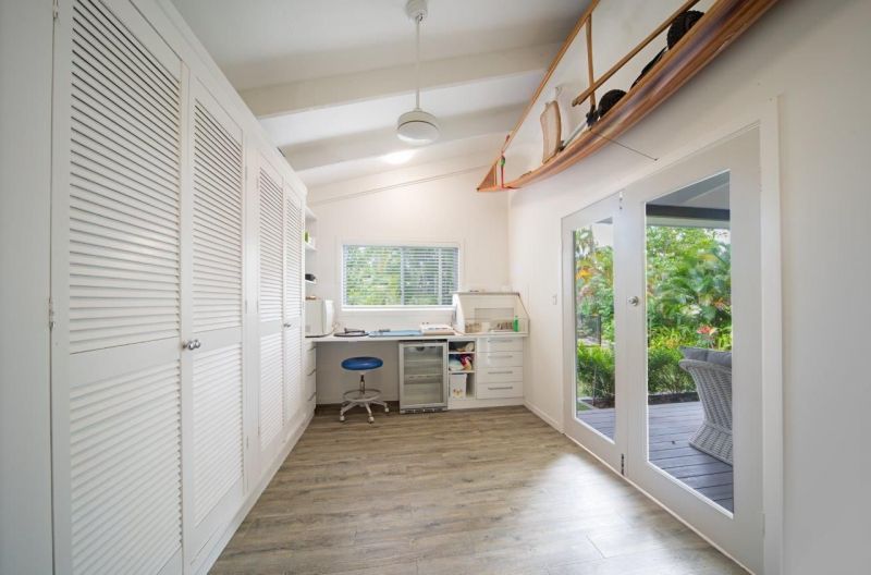 Downstairs the separate living area and studio open onto a 9.6m x 5.5m alfresco area just perfect for the avid entertainer on our warm tropical evenings. The large rear flat yard overlooks a tropical in-ground pool surrounded with established shade trees and lush gardens. Enjoy also having an established vegetable garden and orchid house.