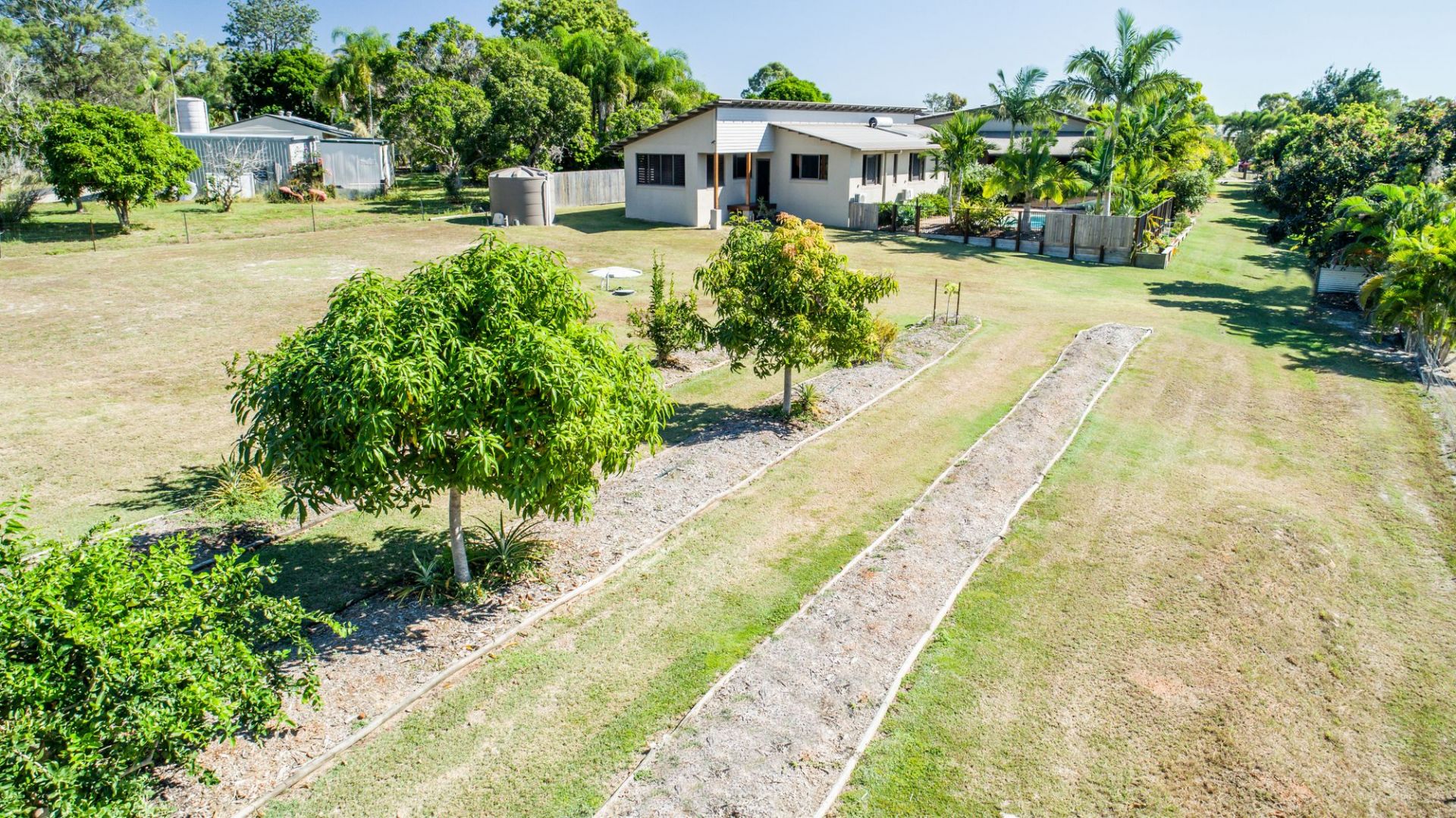 Fruit trees, big vegetable garden