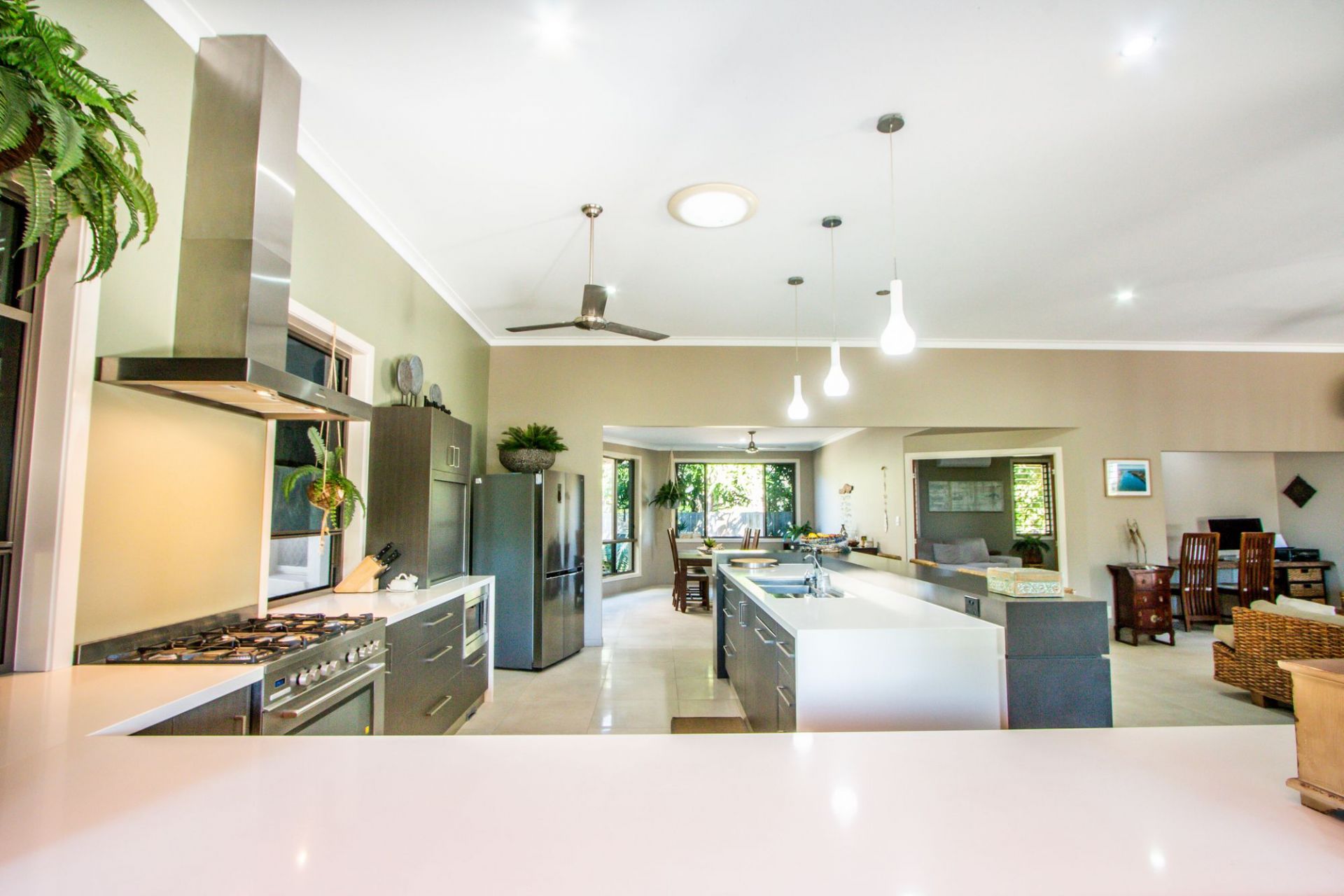 Well appointed Kitchen - Caesarstone Waterfall benches, quality appliances & Butlers Pantry.