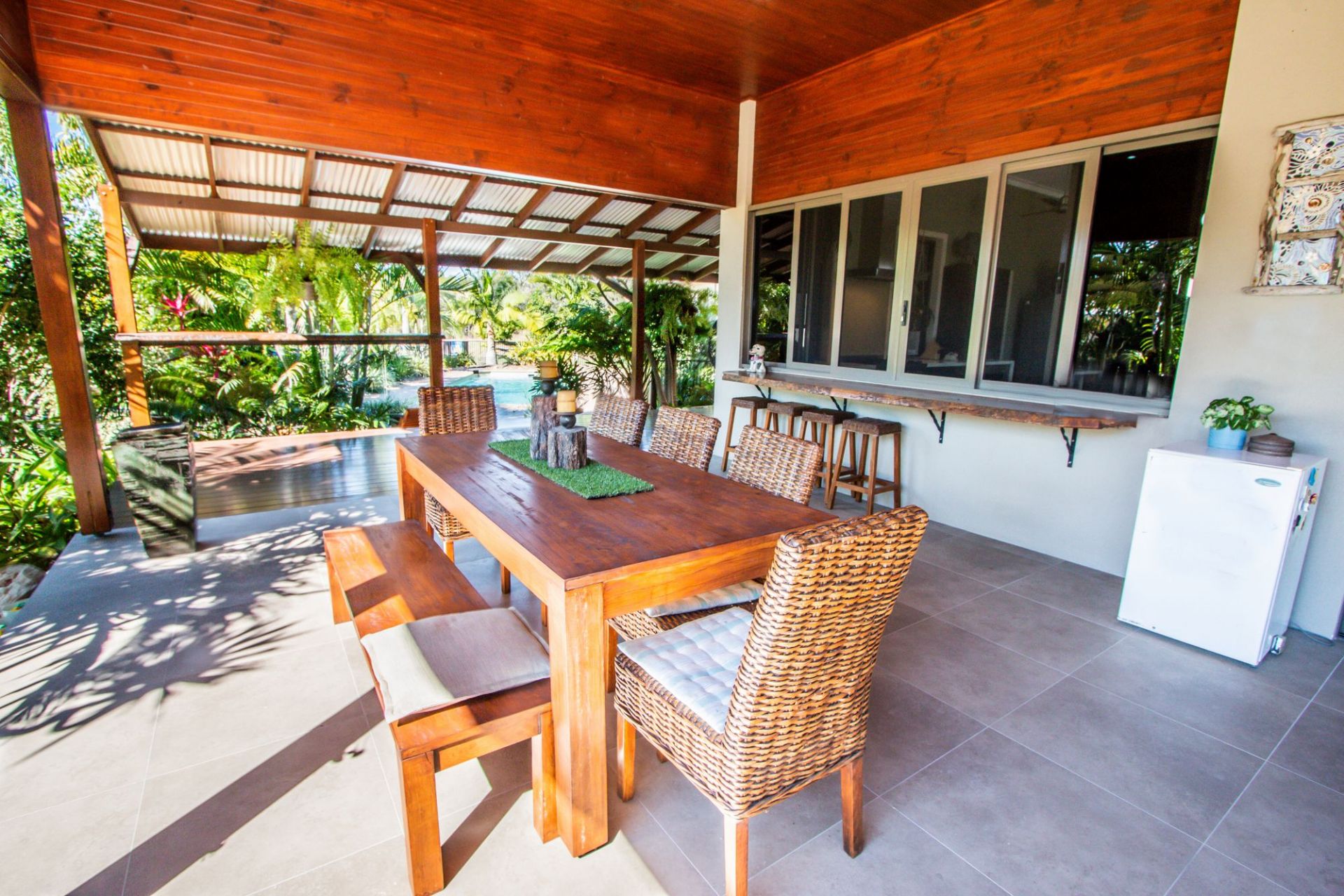 Verandah has Spacious Alfresco dinning with gorgeous pool views and outside Toilet.