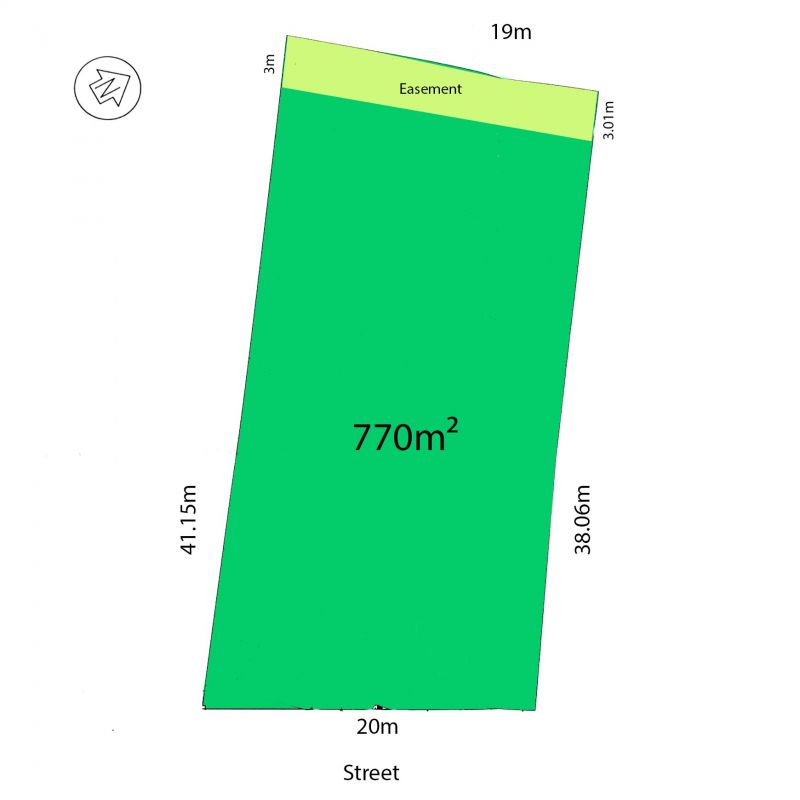 Block is 770m2 including easement (see diagram).