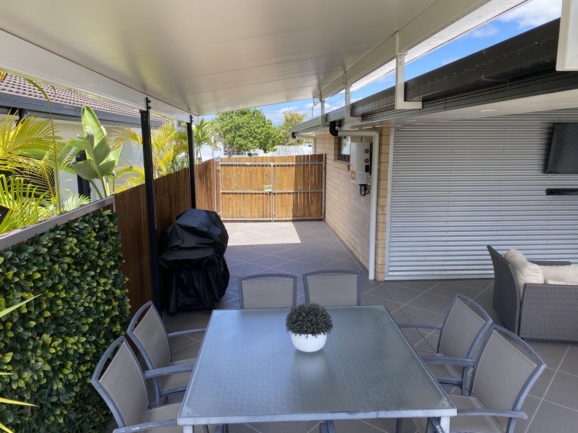 - Double gated side access leads to patio
