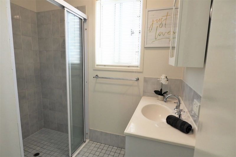 Lovely compact bathroom with large walk-in shower. The lovely outdoor room that can be used all year round for an extra living space, fully covered and enclosed. Remote control single garage attached. Large garden shed and small pergola outdoor area for barbeque etc. Lovely front verandah to enjoy all year round.