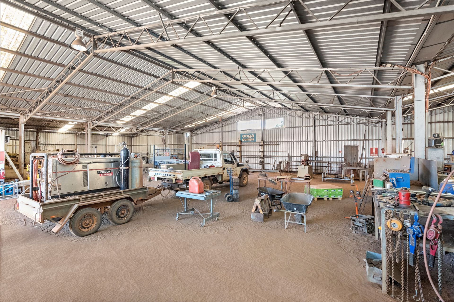 This property has it all! It is the complete package to work from home and make plenty of money and live the dream, be your own boss! Enjoy that lifestyle you have always wanted and spending more time with your family and leaving the rat race behind. Set on a large plot of commercial land this property has 1750m2 of workshop space and airconditioned office, 3 phase power, 2 road frontages, three bedroom modern home, two living areas, gym/second office, inground salt water swimming pool, landscaped gardens with retic, two outdoor entertaining areas, rain water tanks, mains water, security cameras, split systems, wood burning fireplace, automatic front gates, everything you need to start your own business and have a beautiful home/lifestyle all in one. Set in a great community with good schools and community activities with plenty of mining and farming activity around.