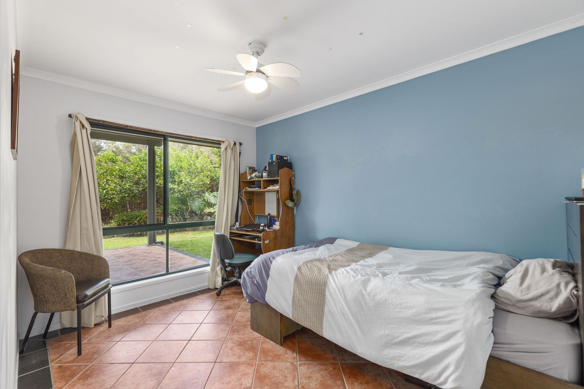 Top of cul-de-sac in peaceful estate. Private rear access to park with mature fruit trees and natives .