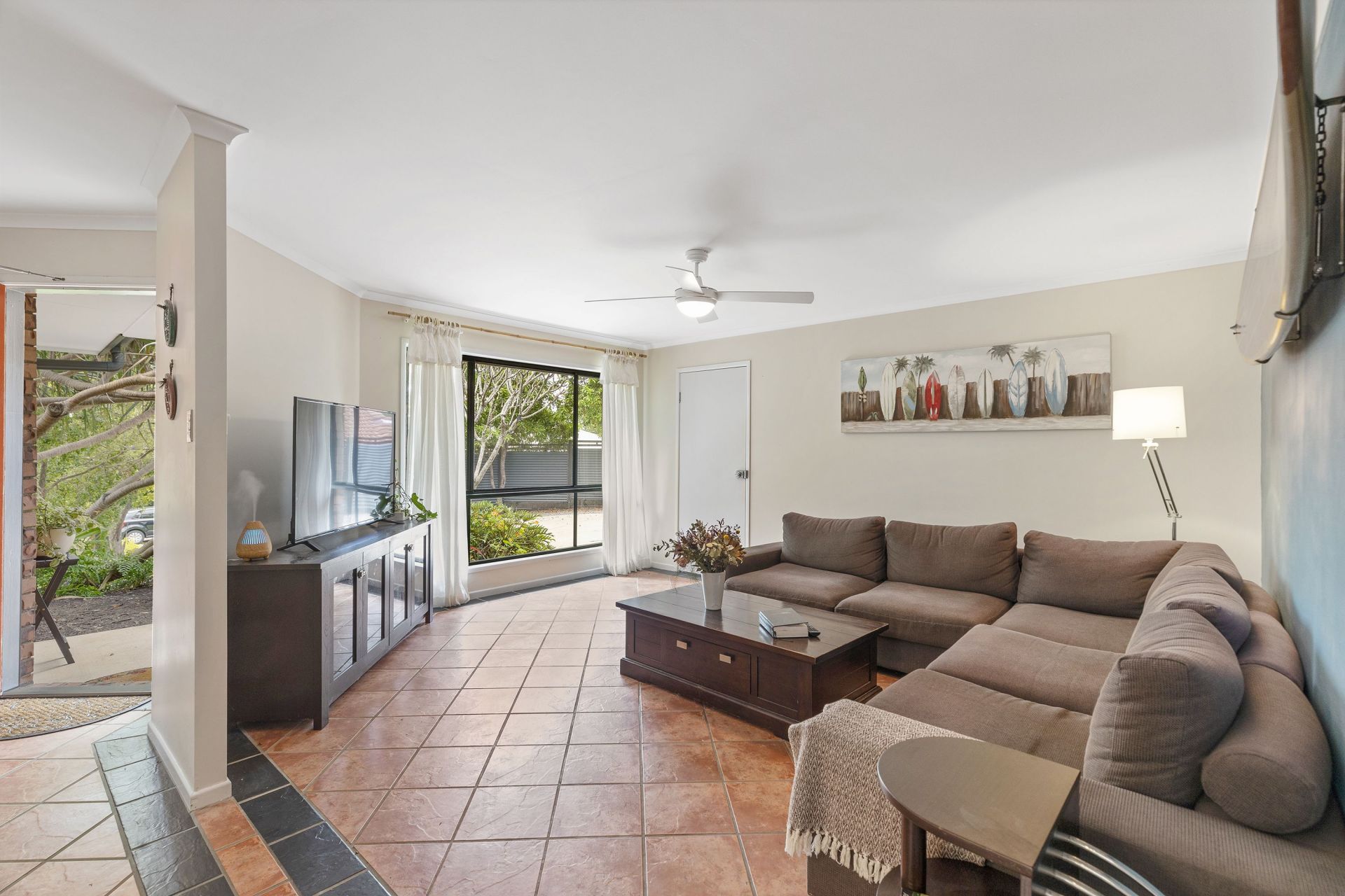 Great street presence with majestic Pandanus palms sheltering the house and providing privacy from street.