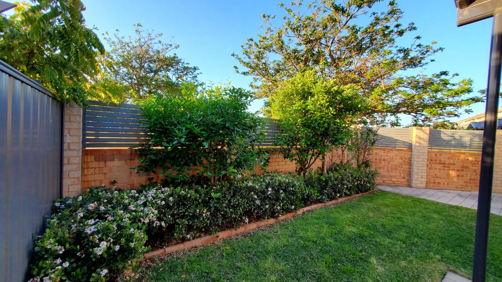 - Corner location backing onto a park with added privacy provided by horizontal slat fence inserts