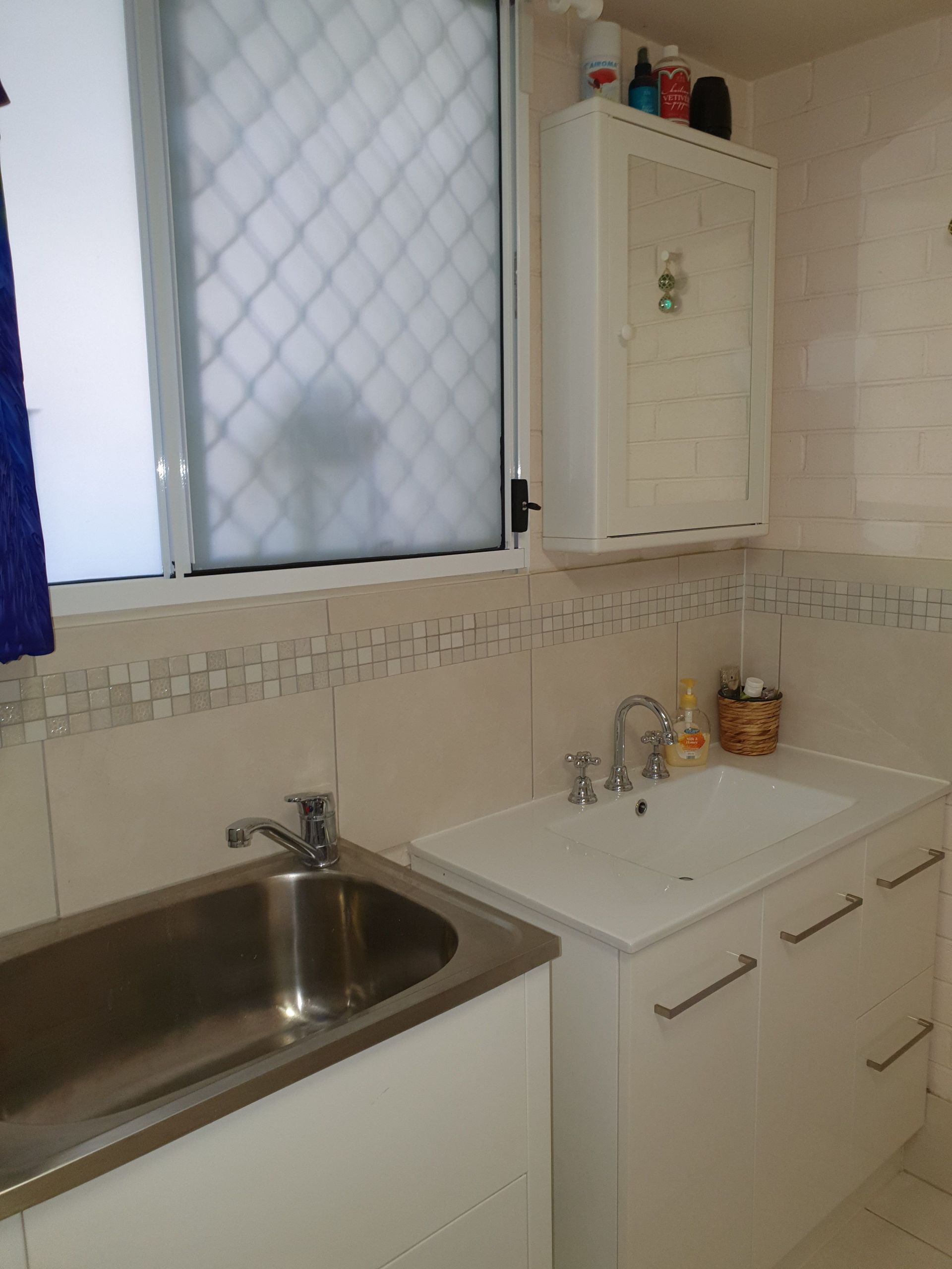 • Bathroom professionally waterproofed and new tiles to walls and floors. New washing tub and vanity.