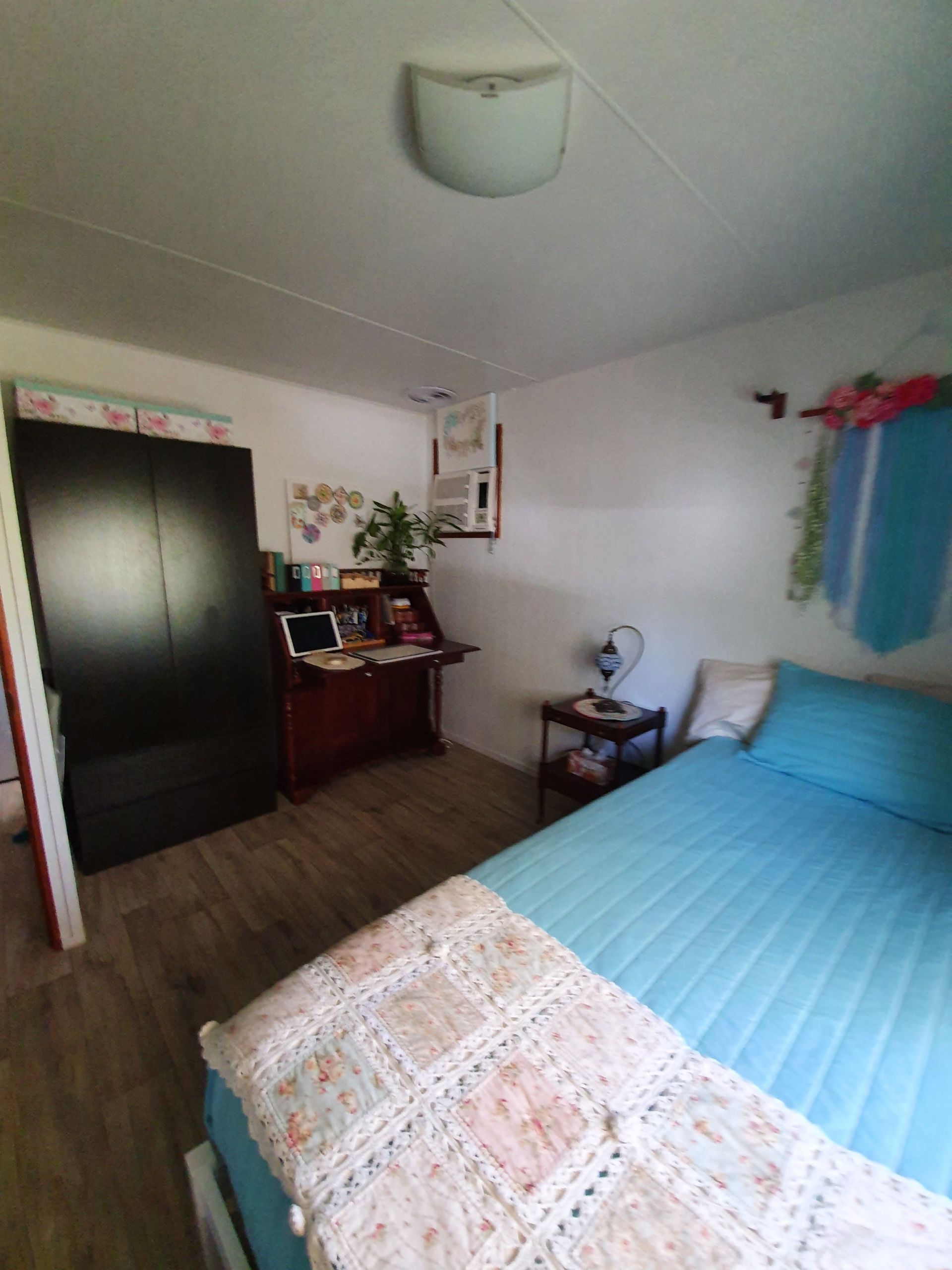 Main bedroom can accommodate a queen bed easily with air conditioning and security screen. Second bedroom also with security screens. This room can be opened up to extend an even larger dining area.