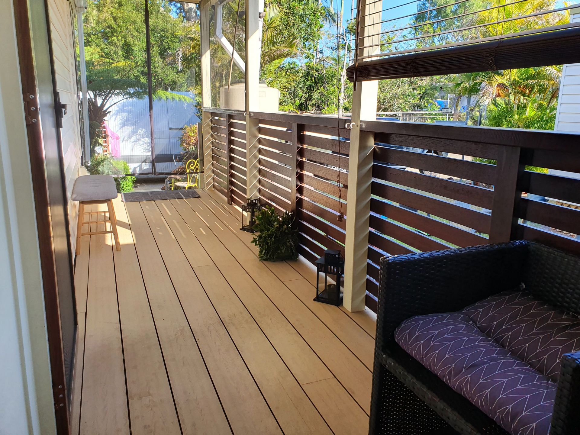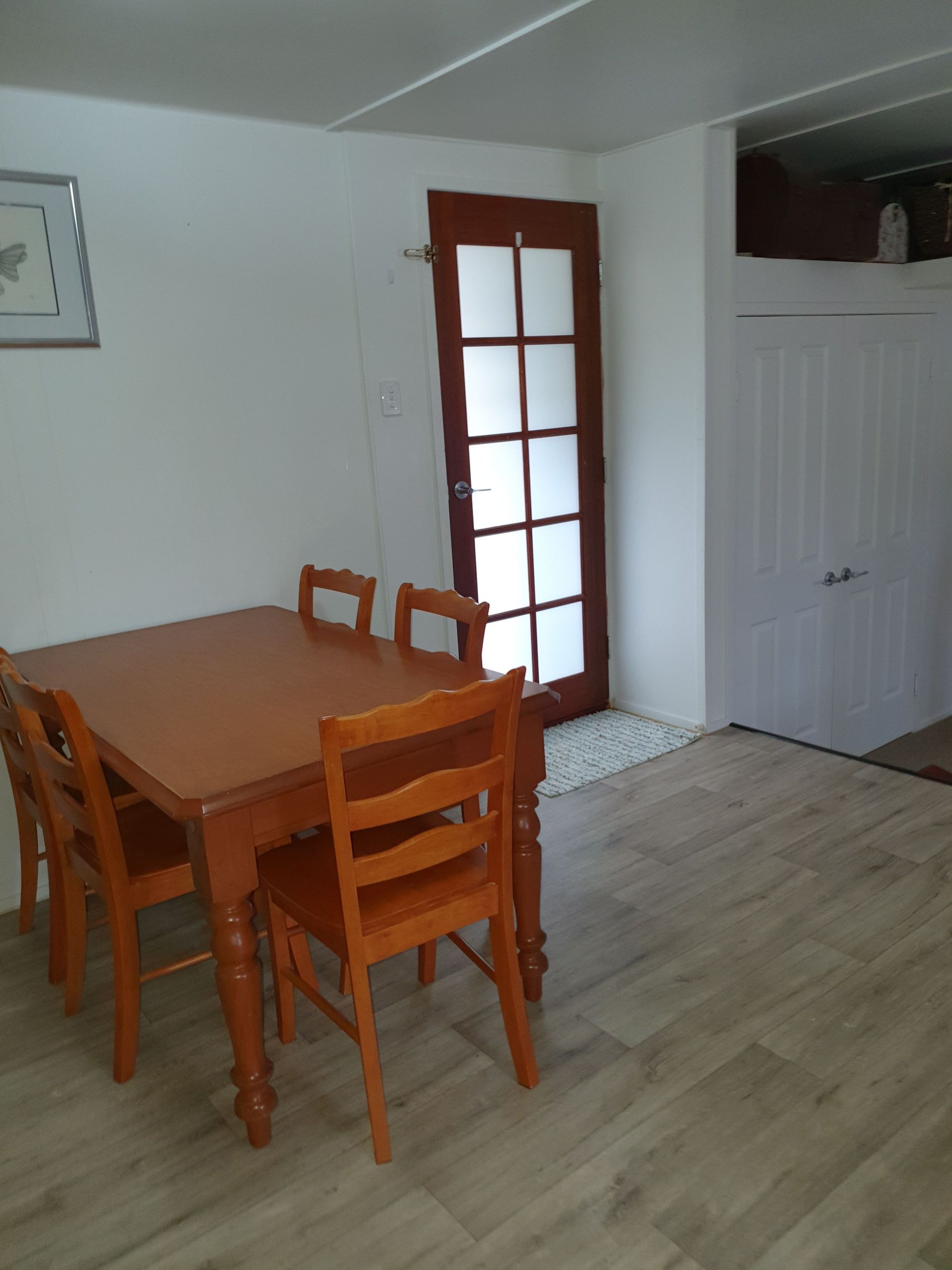 The dining area fits a 6 seater dining table with ease and room to spare. The dining area opens onto your covered veranda with lovely timber rails, this leads down into your own private court yard and garden area.