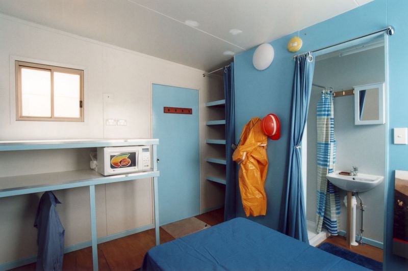 Cabin 2- has Bondor steel foam panel structure, with shower, WC, basin, many shelves, microwave, 2 burner gas cooker, single bed, 3 lights, 6 powerpoints. Mini switchboard. All plumbing in, but has to be connected to water 11 metres away, & electricity, & septic tank. Carpet on floor. 3 windows.
