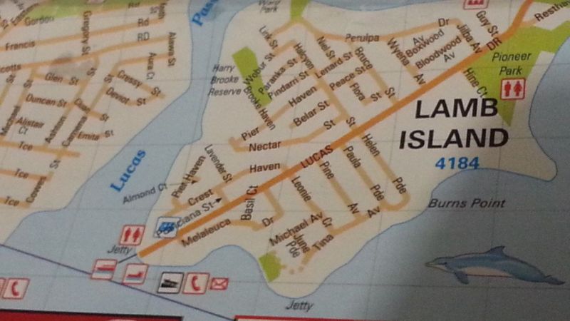 On Lamb Island - 32 km to Brisbane GPO. Ferry about every half hour to Redland Bay, taking 23 minutes onboard a modern airconditioned boat.