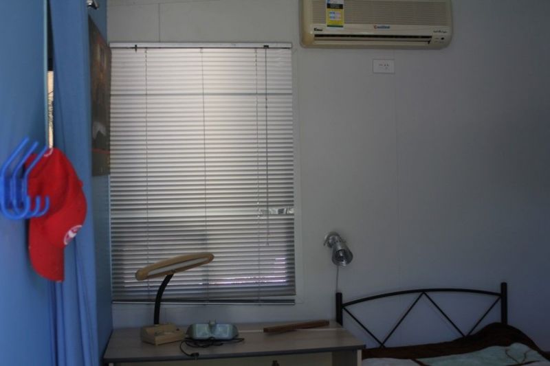 Timber Cabin 1- is 3.5 X 3.5 & has 8 Power points & 4 lights, 1 External PP, steel frame, Insulation in the roof & walls. Timber panel inside, with many shelves & cupboard, 3 windows, has electric switchboard, security door, insect screens, table, paintings. TimberKlik floor, over steel roof sheet, with a rubber sheet over. Has Double bed & Table.