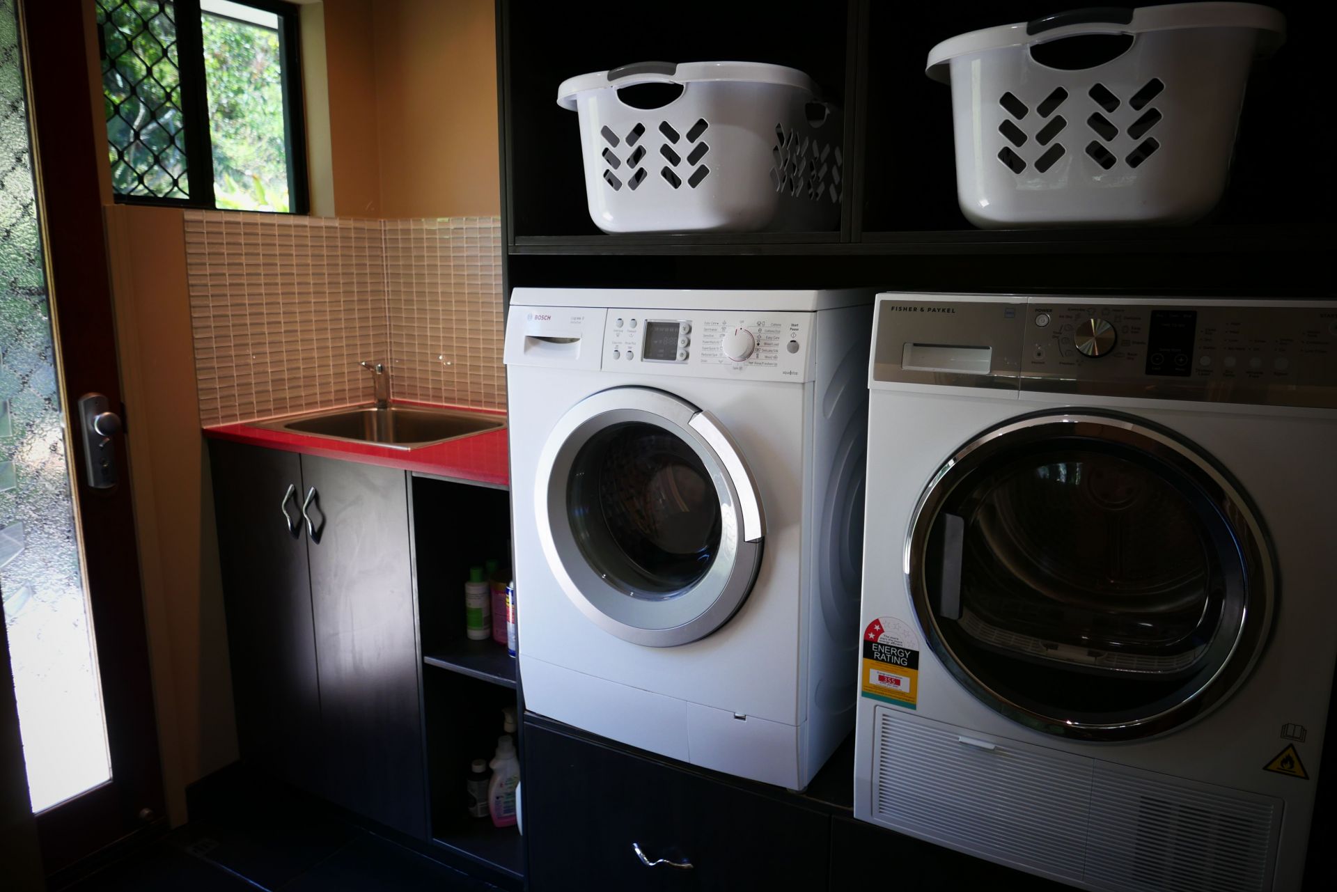 Laundry appliances elevated so no bending down