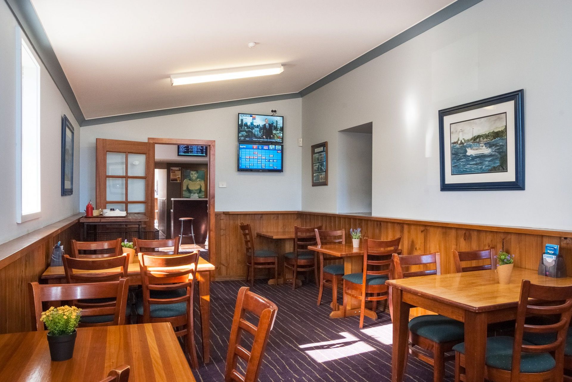 During the summer months, Campbell Town is bustling with tourists heading to and from the East Coast. A popular spot for a beer is at the front bar. The bifold windows open right up, so people can sit and gaze at the world going by