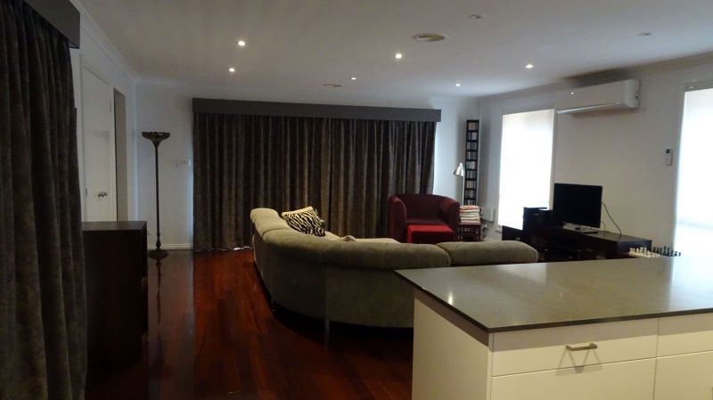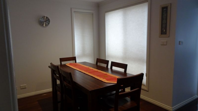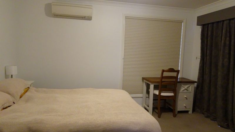 Heavy curtains with pelmets cover the sliding doors in the living and kitchen areas. All other windows have honeycomb blinds for better insulation. Reverse cycle air conditioners heat or cool the kitchen/living area and master bedroom. Ducted heating is also installed throughout the house. The kitchen has a gas stovetop and dishwasher. Outside shoes are not worn inside the house.
