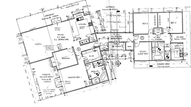 Included is a large deck that is sheltered from prevailing winds, a country-style kitchen with bay window, open plan dining, lounge room, laundry, and a study.