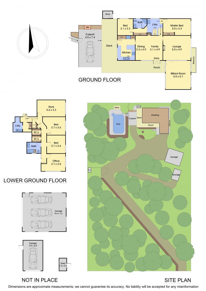 - Two large double garages plus large carport give room for 6 to 8 vehicles under cover or a large workshop.