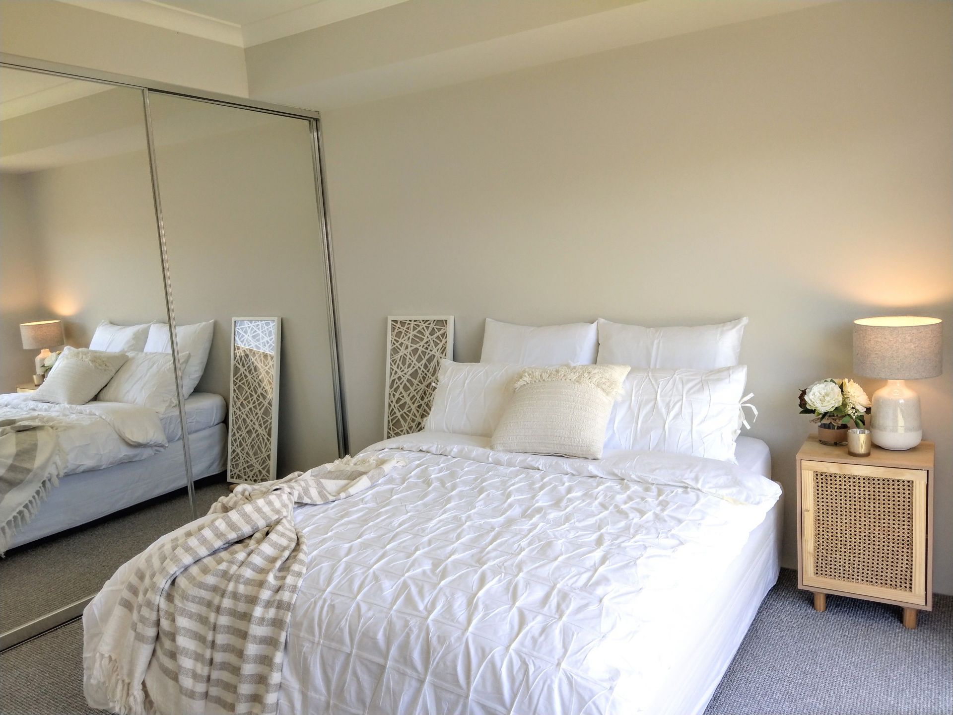 There are a further two double bedrooms, with massive full ceiling height glass mirror sliders double wardrobes, quality carpet flooring.