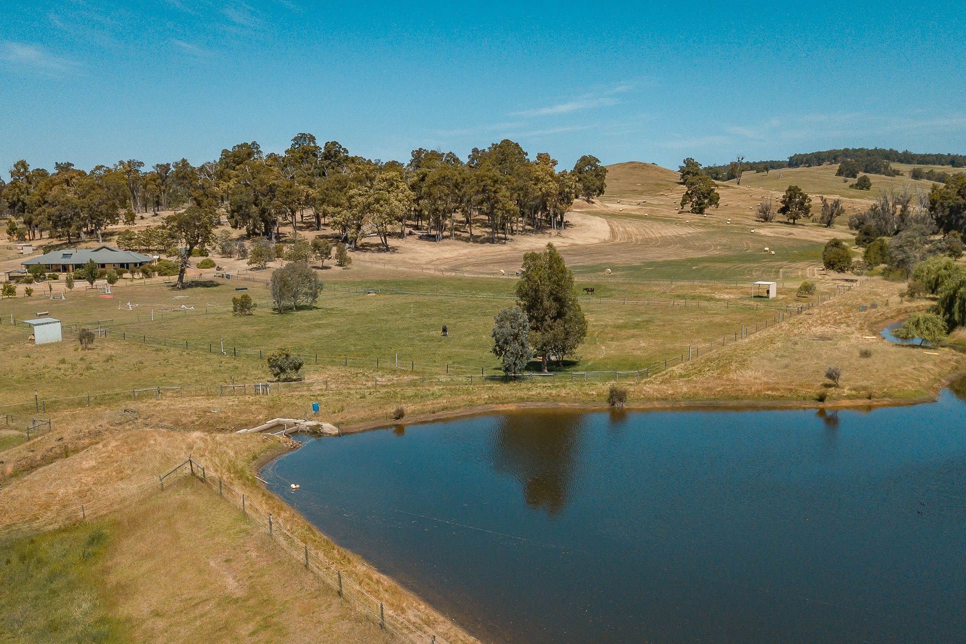 The property is divided into 15 paddocks, 9 of which have solidly built 4mx3mx4mhigh shelters for the horses, livestock and keeping hay dry. The paddocks on one side of the drive are reticulated by an automated control system from the drinking quality bore water and all the water troughs are connected to the bore through the automated irrigation system. On the other side of the drive, the irrigation system is via two water pumps (petrol and diesel), which could provide water to crops if required.