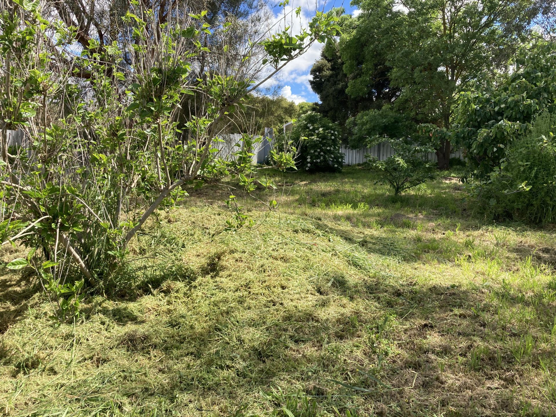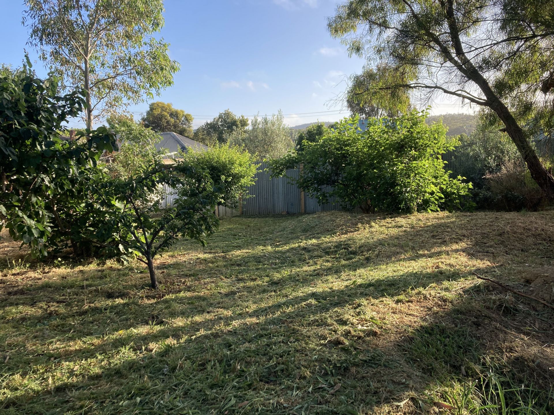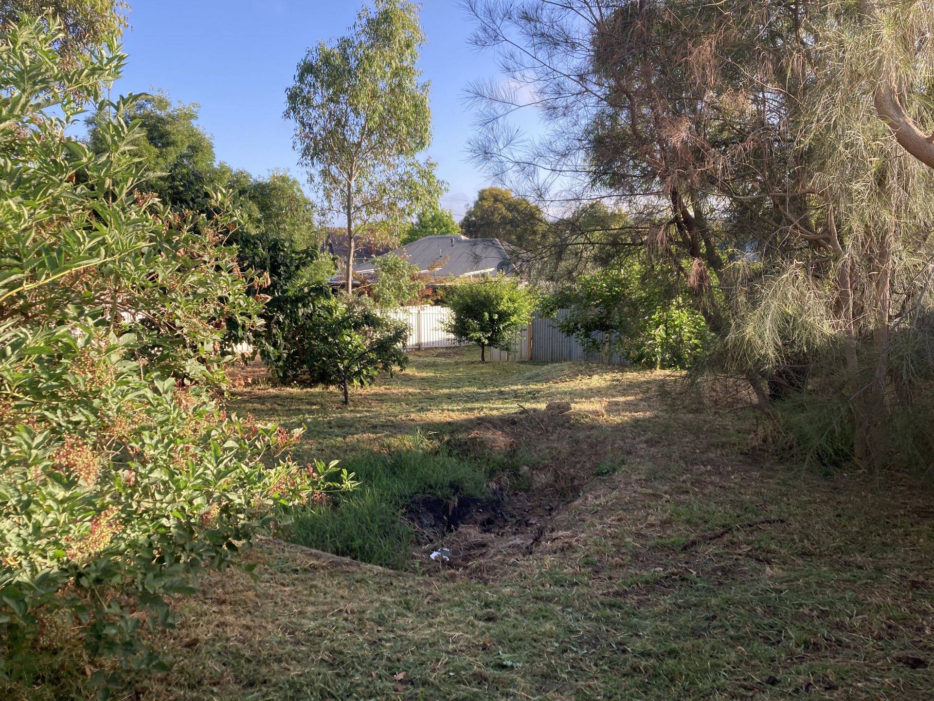 584sqm (about 157sqm driveway) with established fruit trees (quince, fig, feijoas, plum, olive, mulberry), elderflower as well as gum trees, sheoaks (casuarina) and an ash. I have left all trees for the buyer to decide their fate.