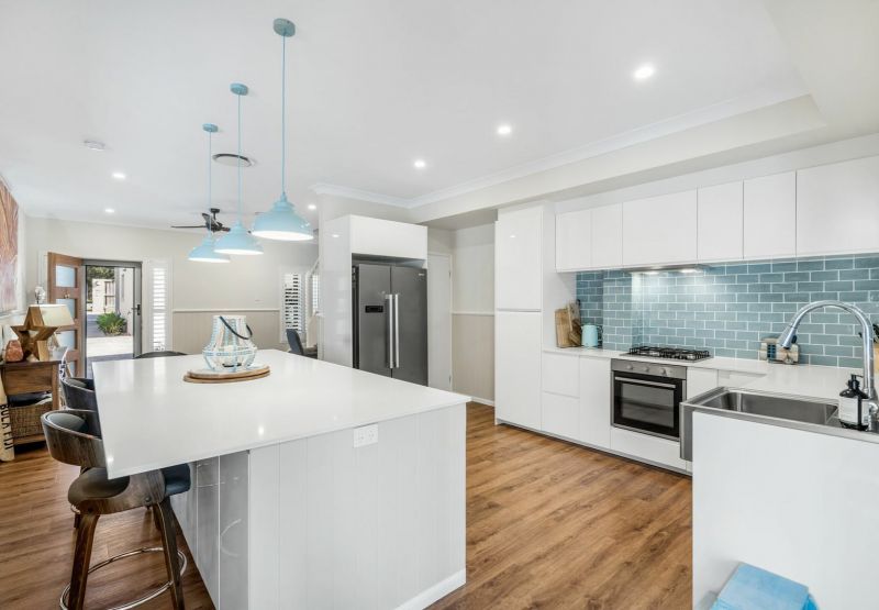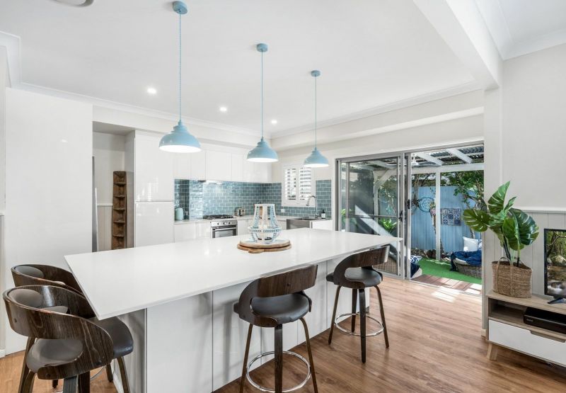 The layout has very generous living spaces with an open plan lounge and kitchen, plus a modern oversized stone bench top, that could easily fit five stools around. With the outlook and access to the garden. Open and undercover courtyard offers a great space to entertain.