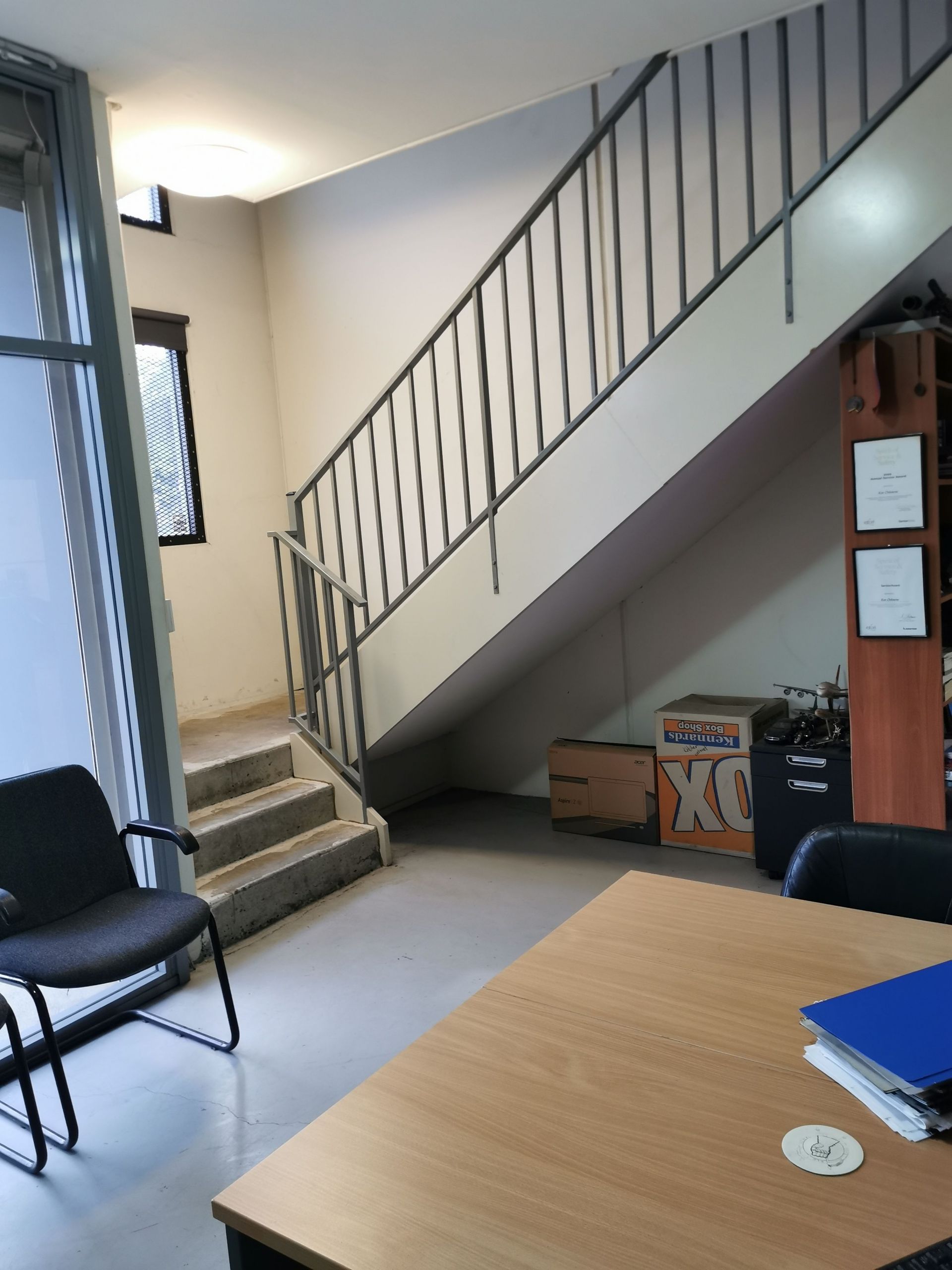 New upstairs office carpet will be laid at settlement.