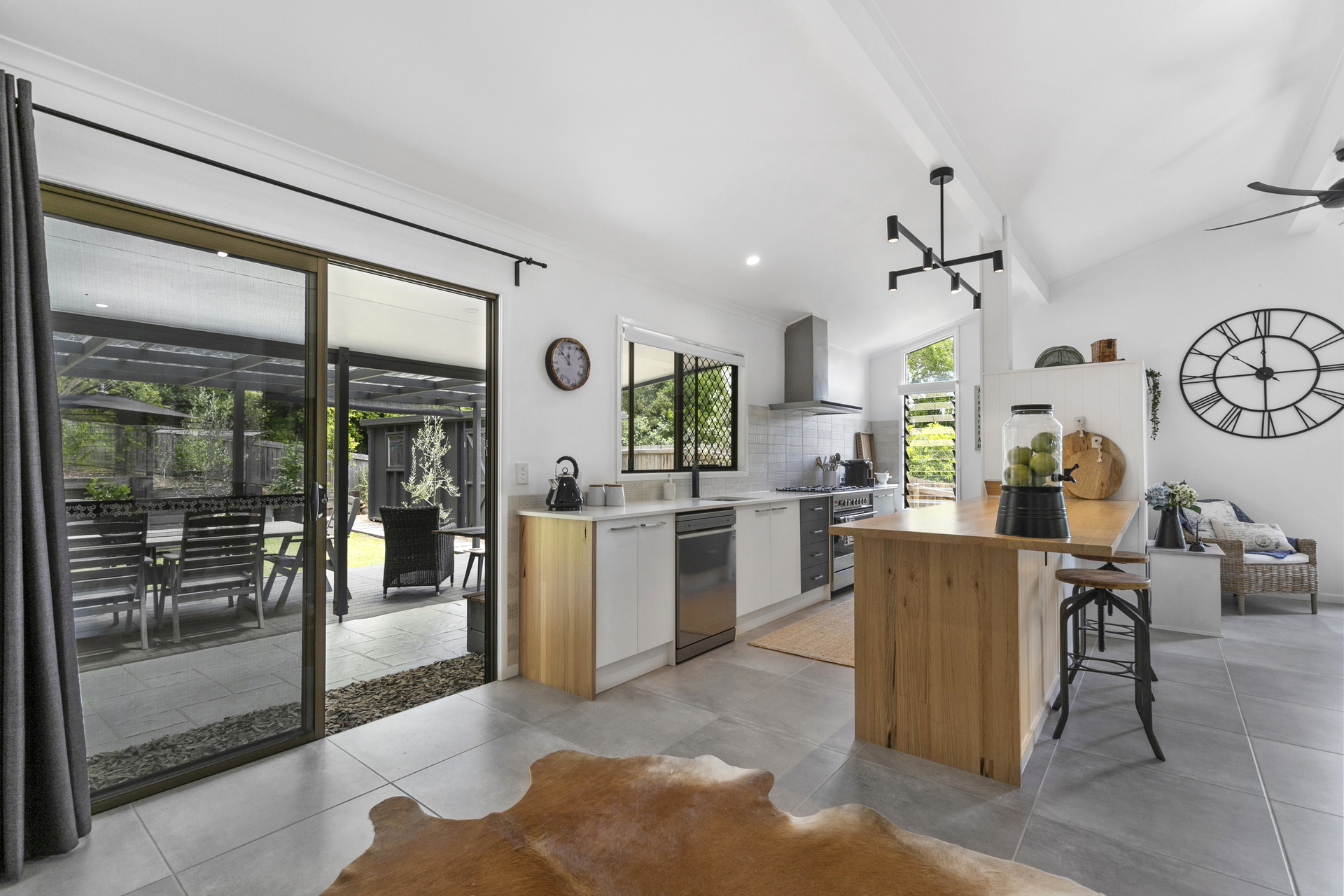 Butlers pantry / laundry with barn door. New kitchen with soft close drawers and wood and stone bench tops, great entertainers kitchen with 900 s/s Fisher Paykel gas and electric stove and rangehood. LG s/s dishwasher. New wool carpet and underlay 600 x 600 to rest of house. Raked ceilings in living area with 2 large ceiling fans. All new led lighting NBN and Foxtel connections. Plantation shutters fitted. Roof painted in Surfmist heat resistant paint. Ceilings insulated. Front and rear covered decks. New fencing to sides. Garage or worshop space, high carport will take caravan or boat, extra off street parking. Storage shed under house. Private back yard.. Walking distance to shops, rail, restaurants, school and medical. Nothing to do just relax and enjoy the Palmwoods lifestyle with a 20 minute drive to Maroochydore and Caloundra beaches and 10 minutes to Montville.