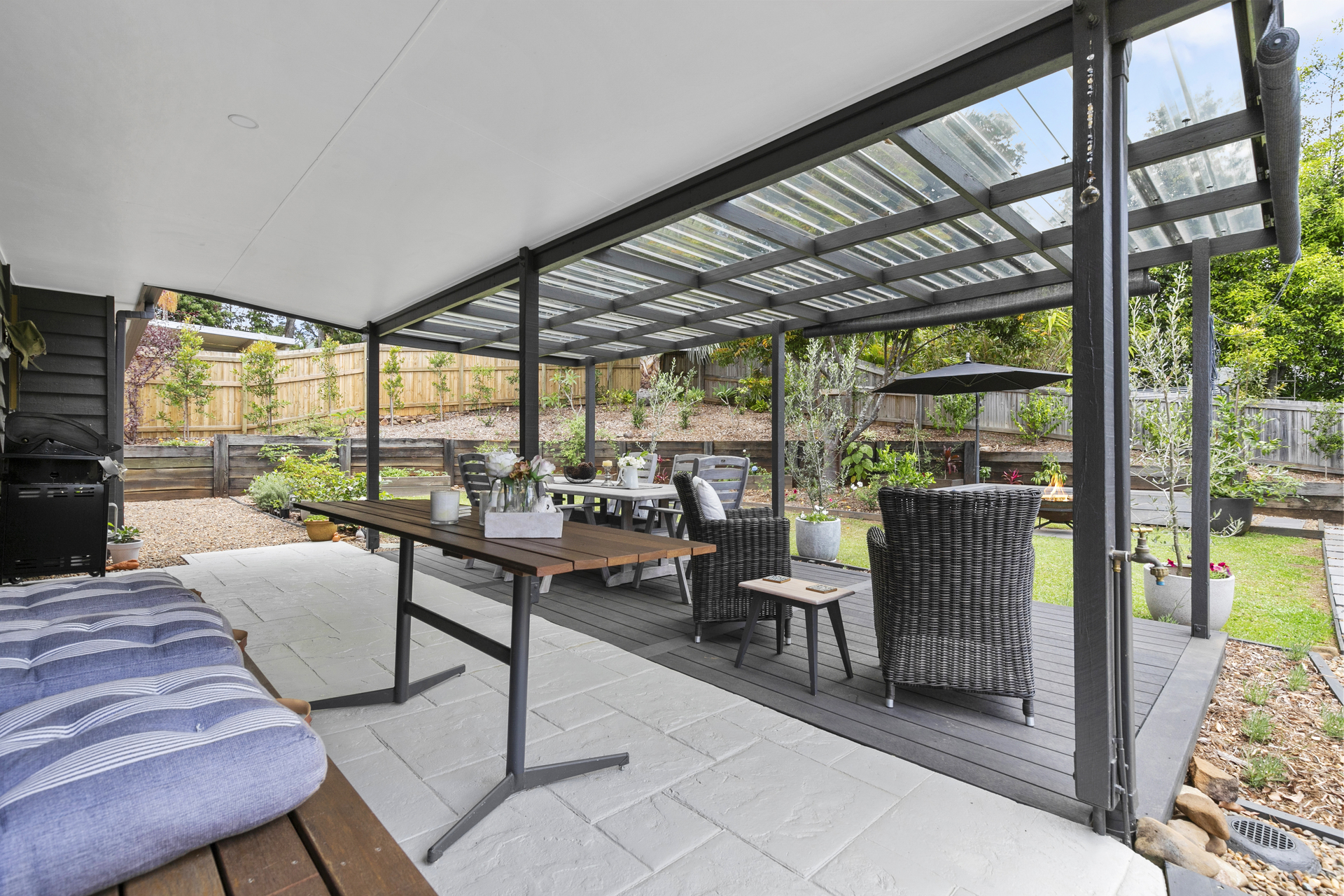 Completely renovated throughout, 3 bedroom home in a cool high established position. Outlook over trees from most windows and decks.