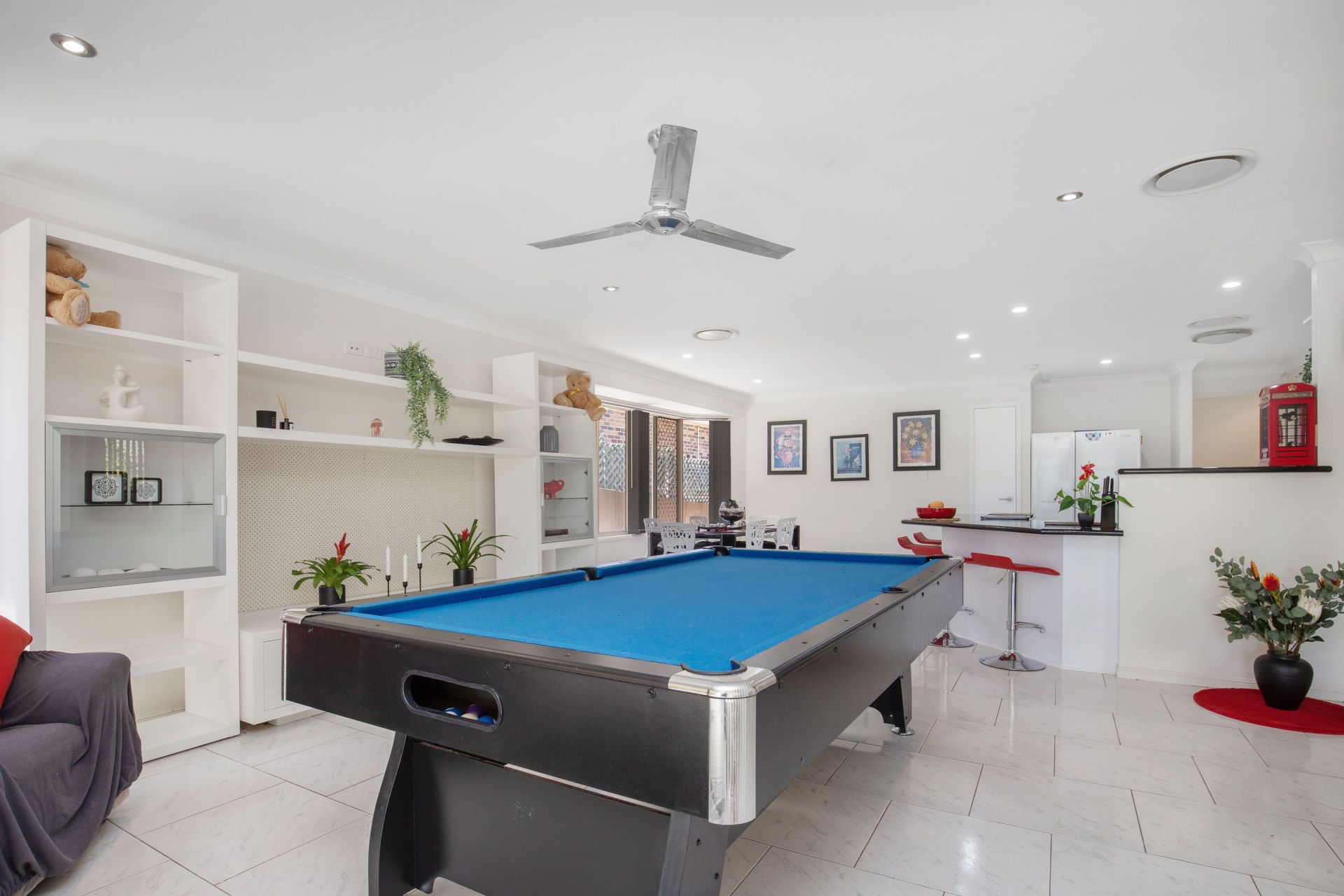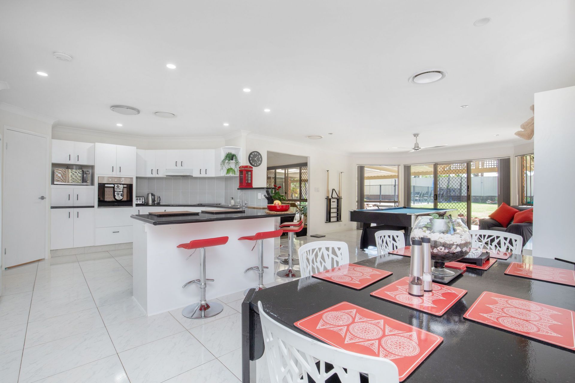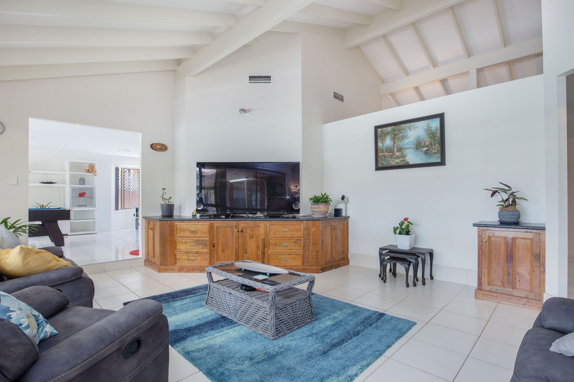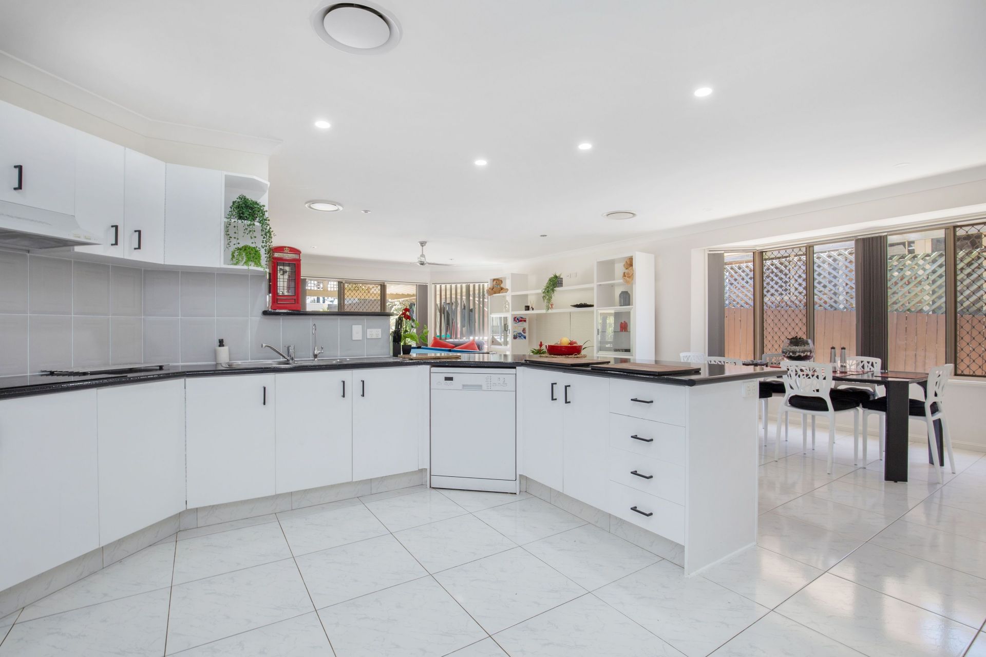 Situated on a large elevated at front and flat at back 914m2 block, this home is incredibly spacious with it's open plan living, high raked ceilings over the sunken lounge, a huge undercover entertainment area, fully fenced flat grassy backyard with a nature reserve behind, tropical saltwater pool, easy to maintain gardens and lawn - the only thing left to do in your new home is ENJOY IT !!!