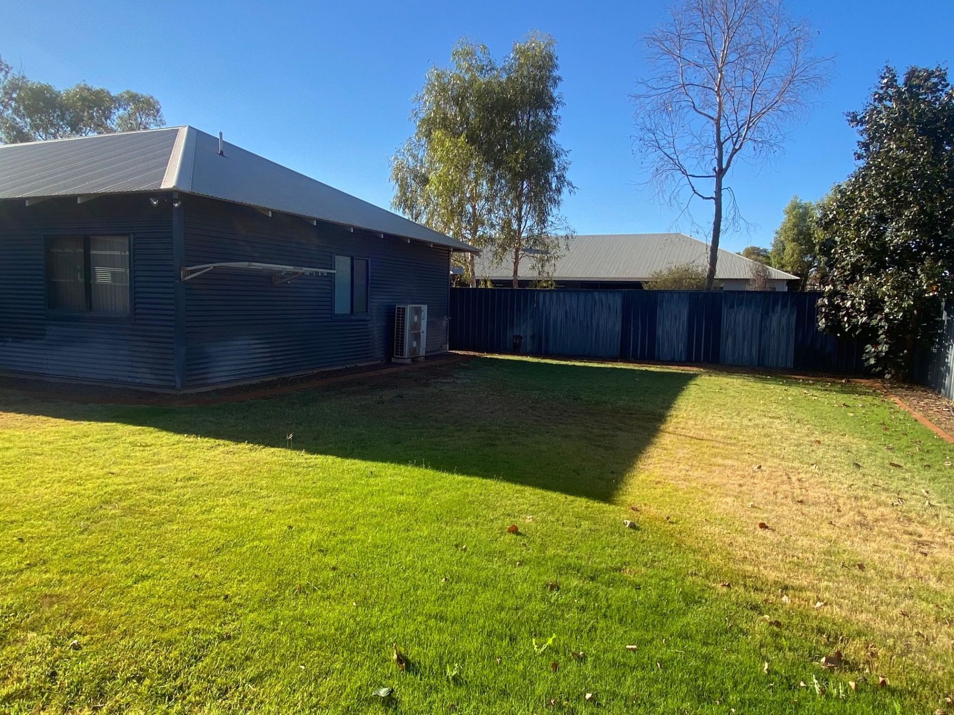 An up market 5 x 2 large colourbond house, large open plan kitchen and living room with separate entertainment room that could be a 6 bedroom if desired. It has two bathrooms and 2 additional toilets, one off the laundry and the other outside next to the alfresco area.