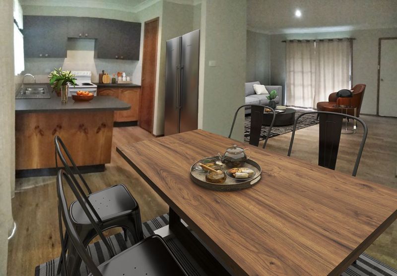 Open plan 3 bedroom home, Air conditioning, freshly painted, new flooring and curtains through out, extra wc in laundry.