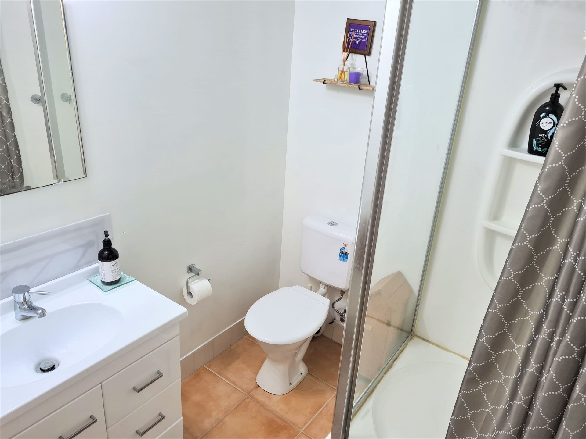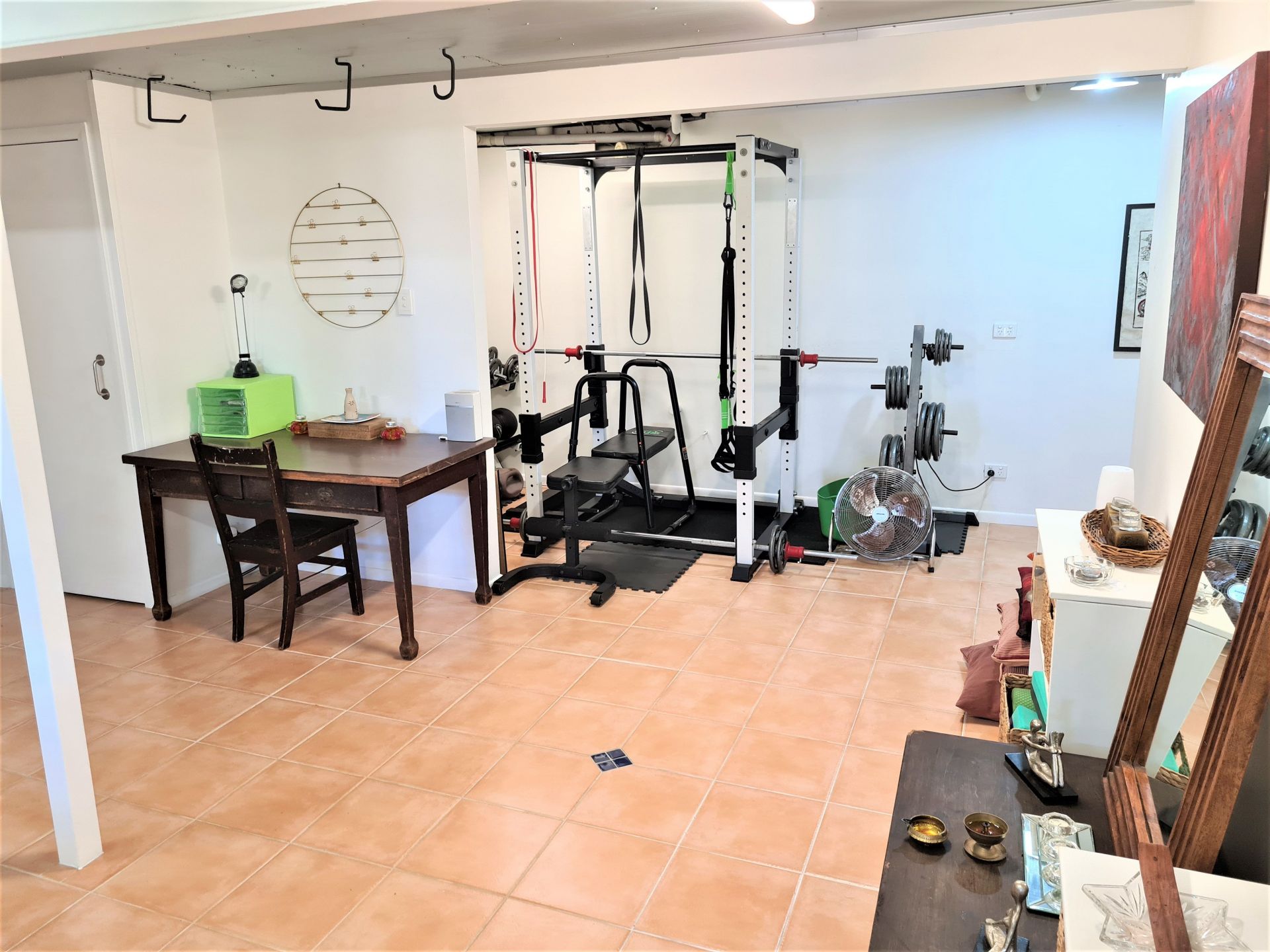 - Large downstairs space (just under legal height) currently utilised as home gym, a workshop, closed storage space under stairs, guest room with en-suite. Access is via carport and internal stairs