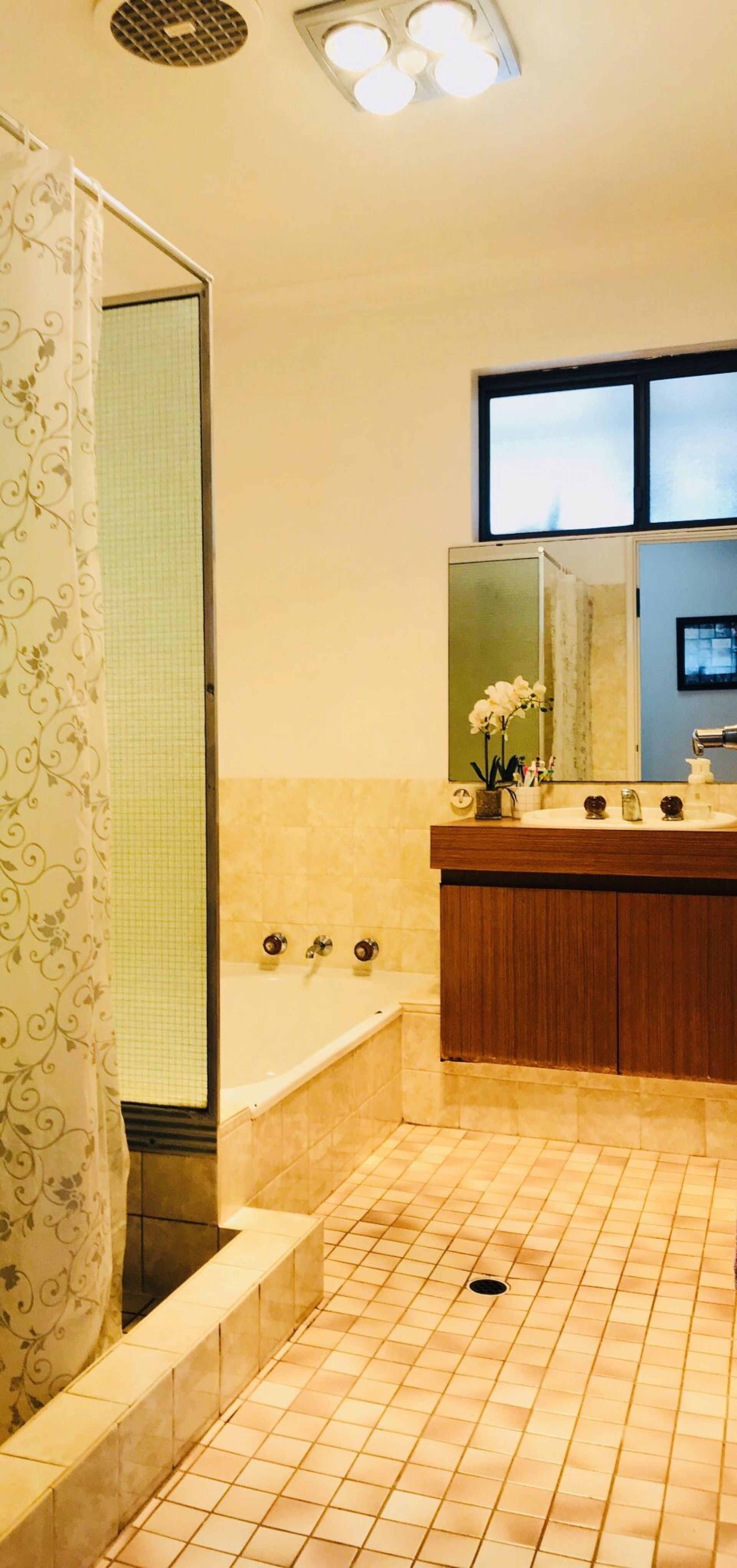 The family bathroom is functional, featuring a separate shower and bath, with the laundry and separate toilet situated next door.