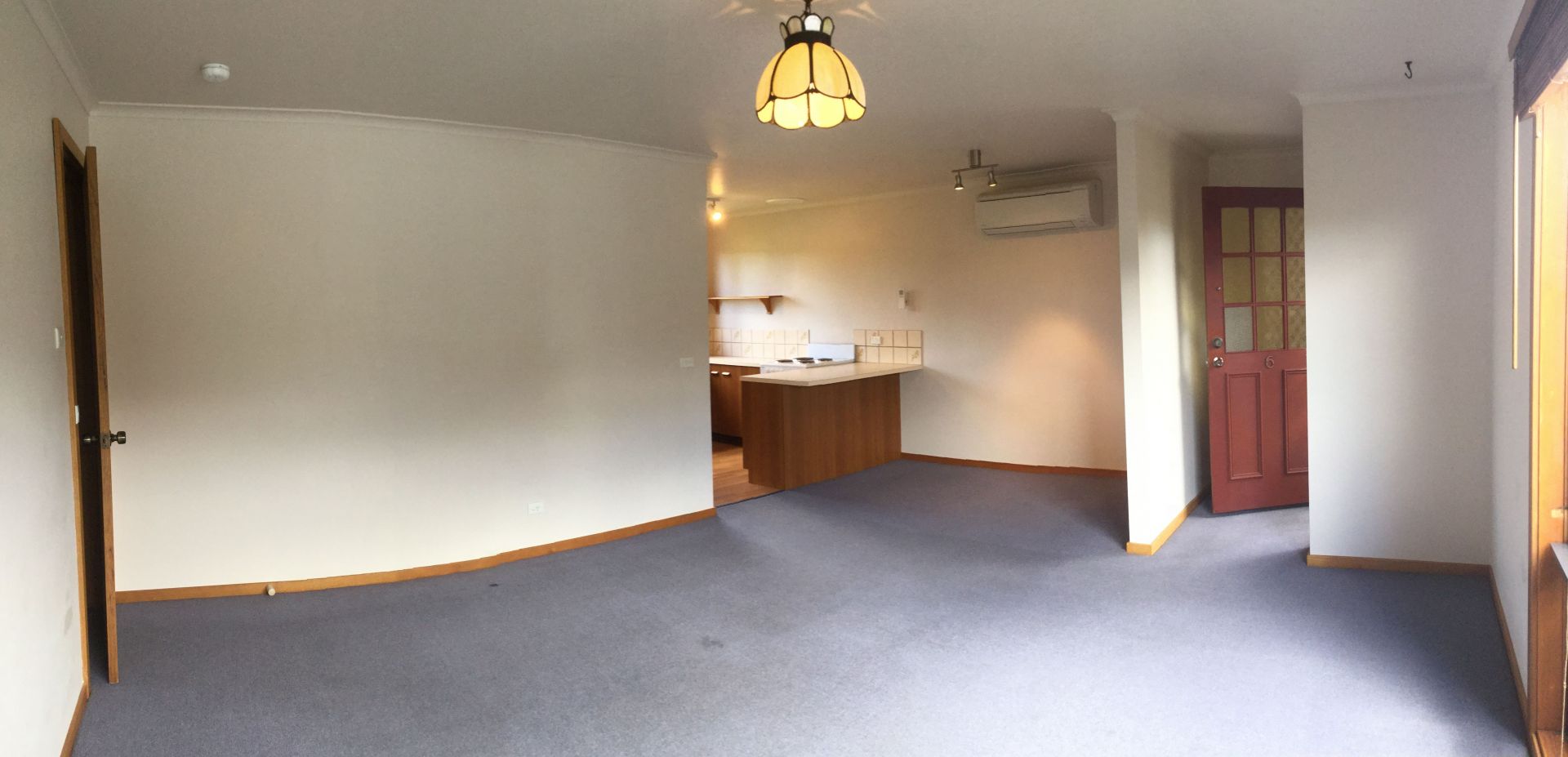 The home comprises open plan kitchen, dining and lounge, a good size double bedroom with built ins and a second bedroom or study, a tidy bathroom with separate shower, separate laundry with full height linen cupboard and separate toilet.