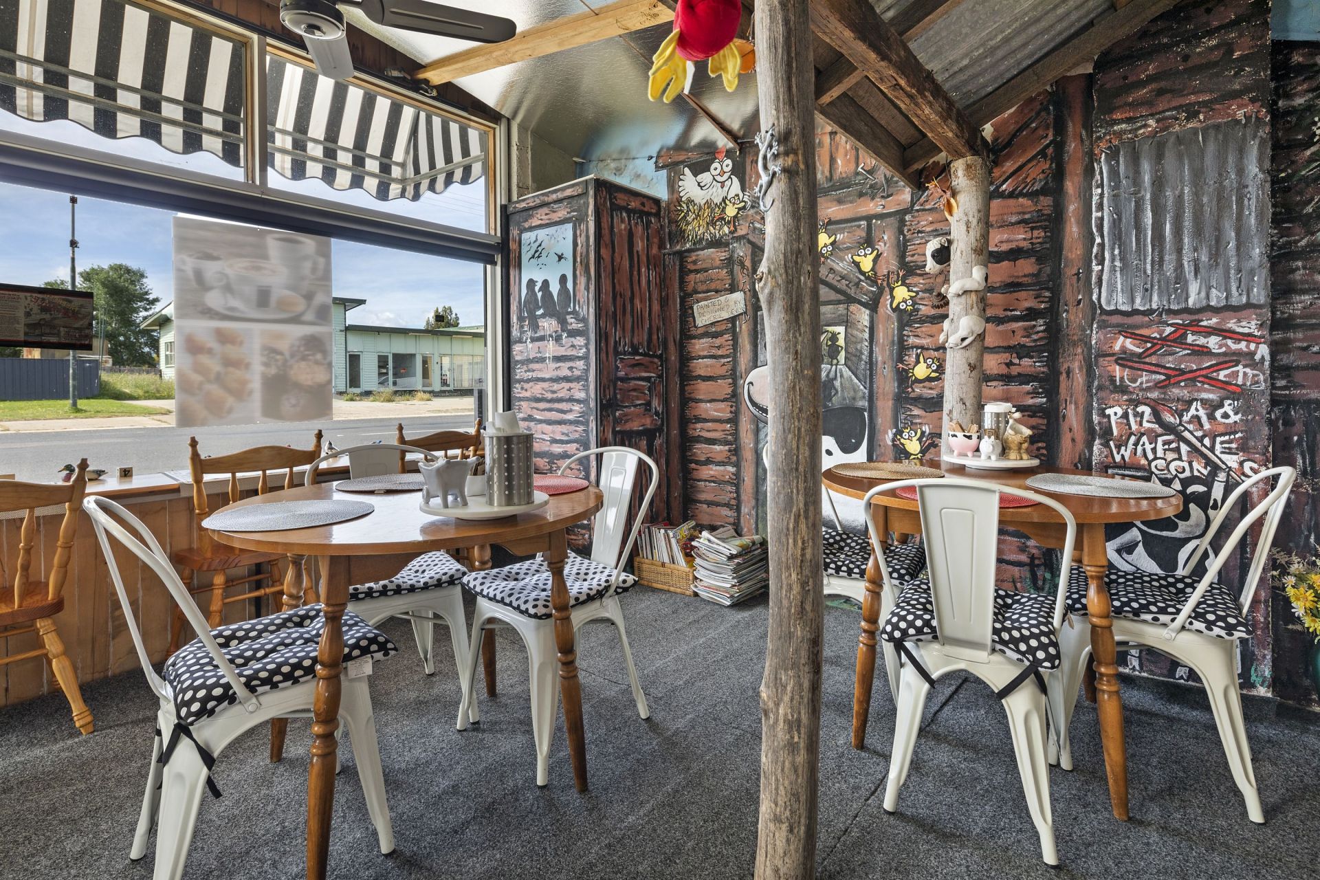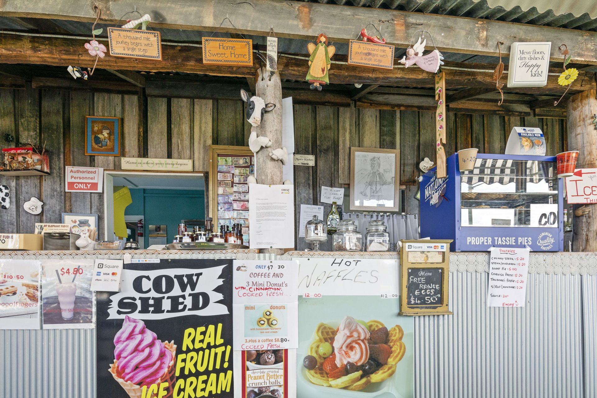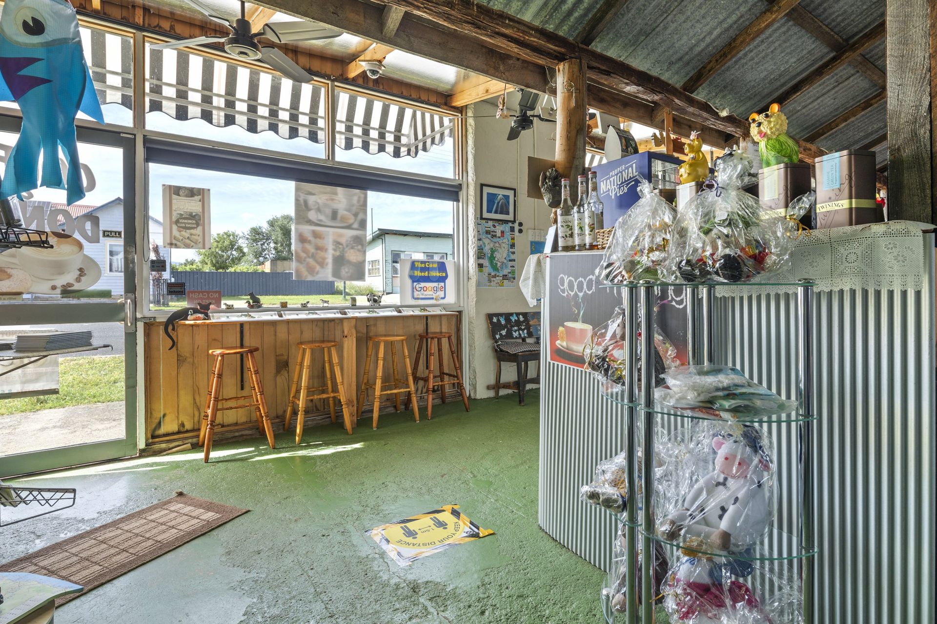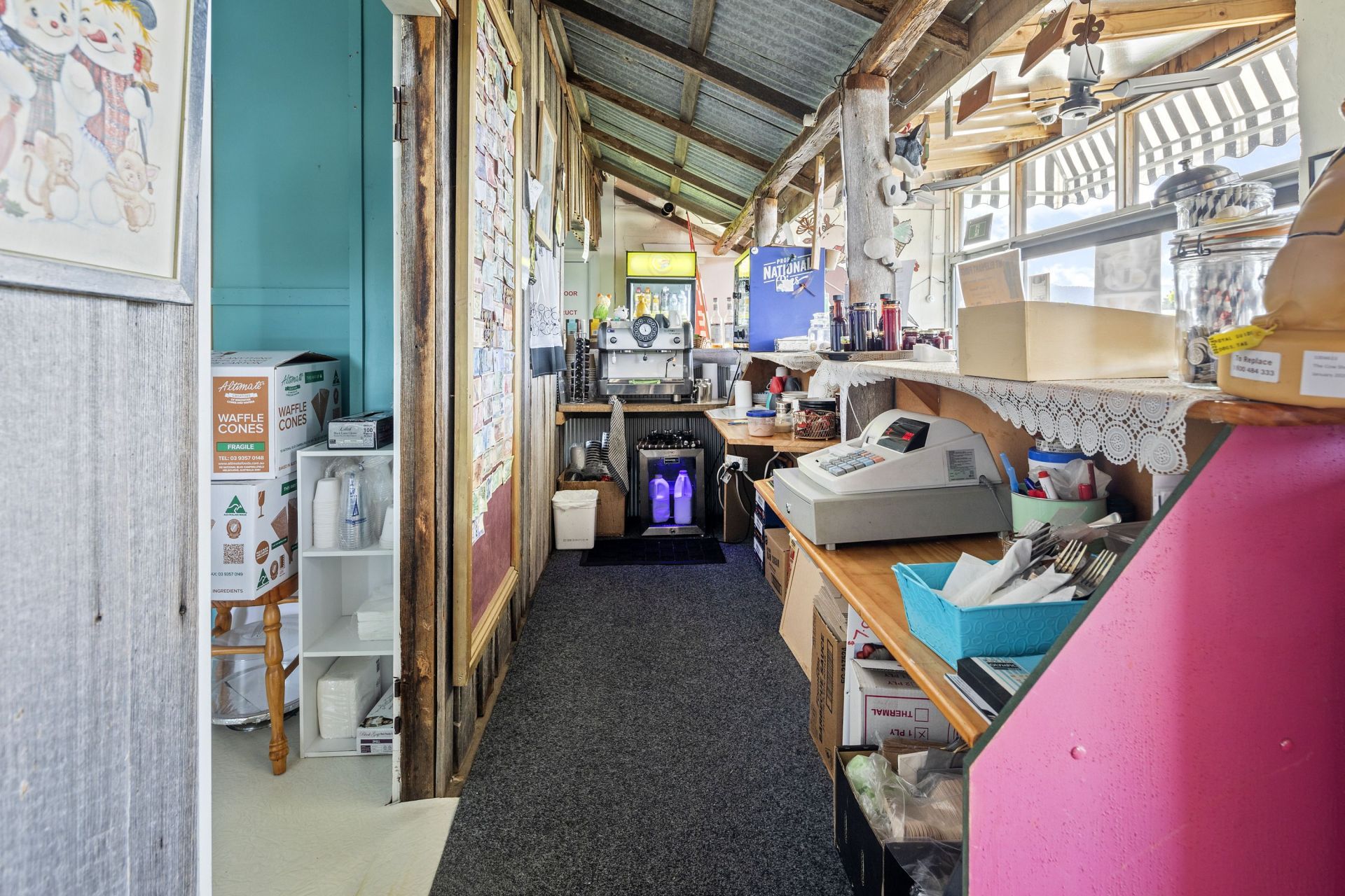 At the moment the Cafe is fully operational and trading 5 days per week from 9am till 5.30 pm selling our own specialty home blended real fruit ice cream , waffles with fruit and ice cream Nan's home made sausage rolls , hot coffees , home baked donuts ,cold drinks , pies pasties, etc eat in or take away.