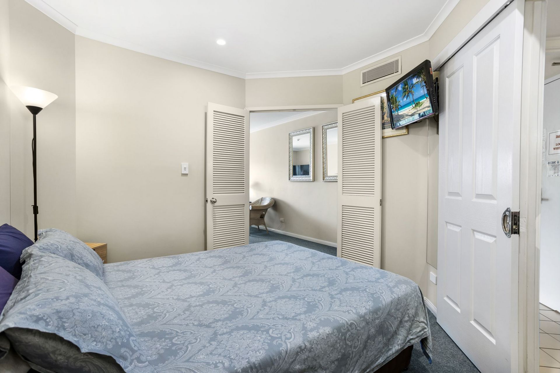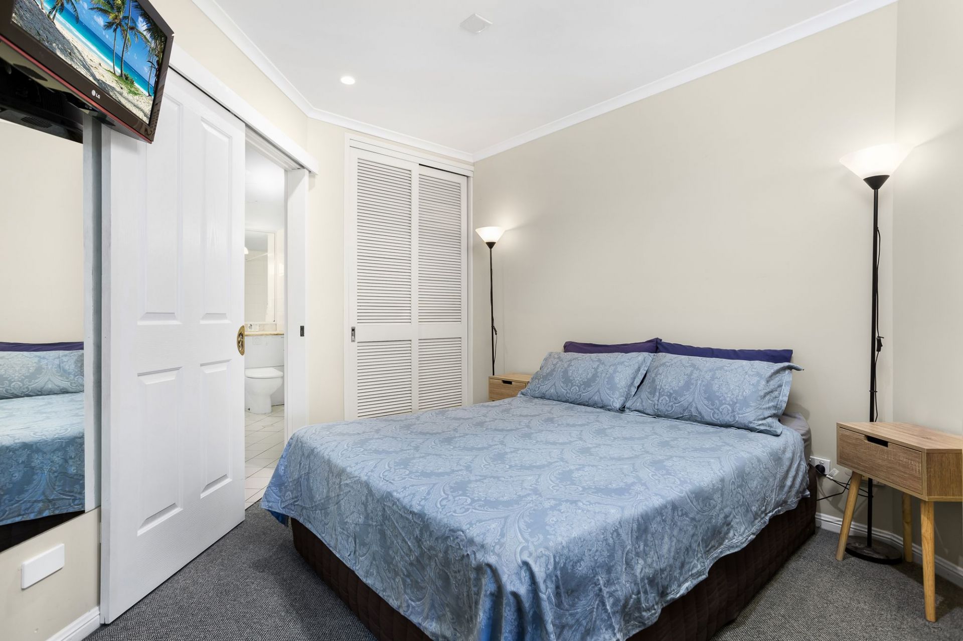 - Queen Bed (wall mounted bedroom TV and newly installed dimmable lighting)