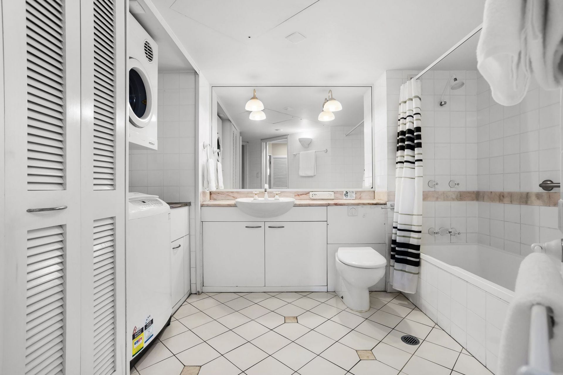 - Large bathroom and laundry furnished with Washing machine and dryer