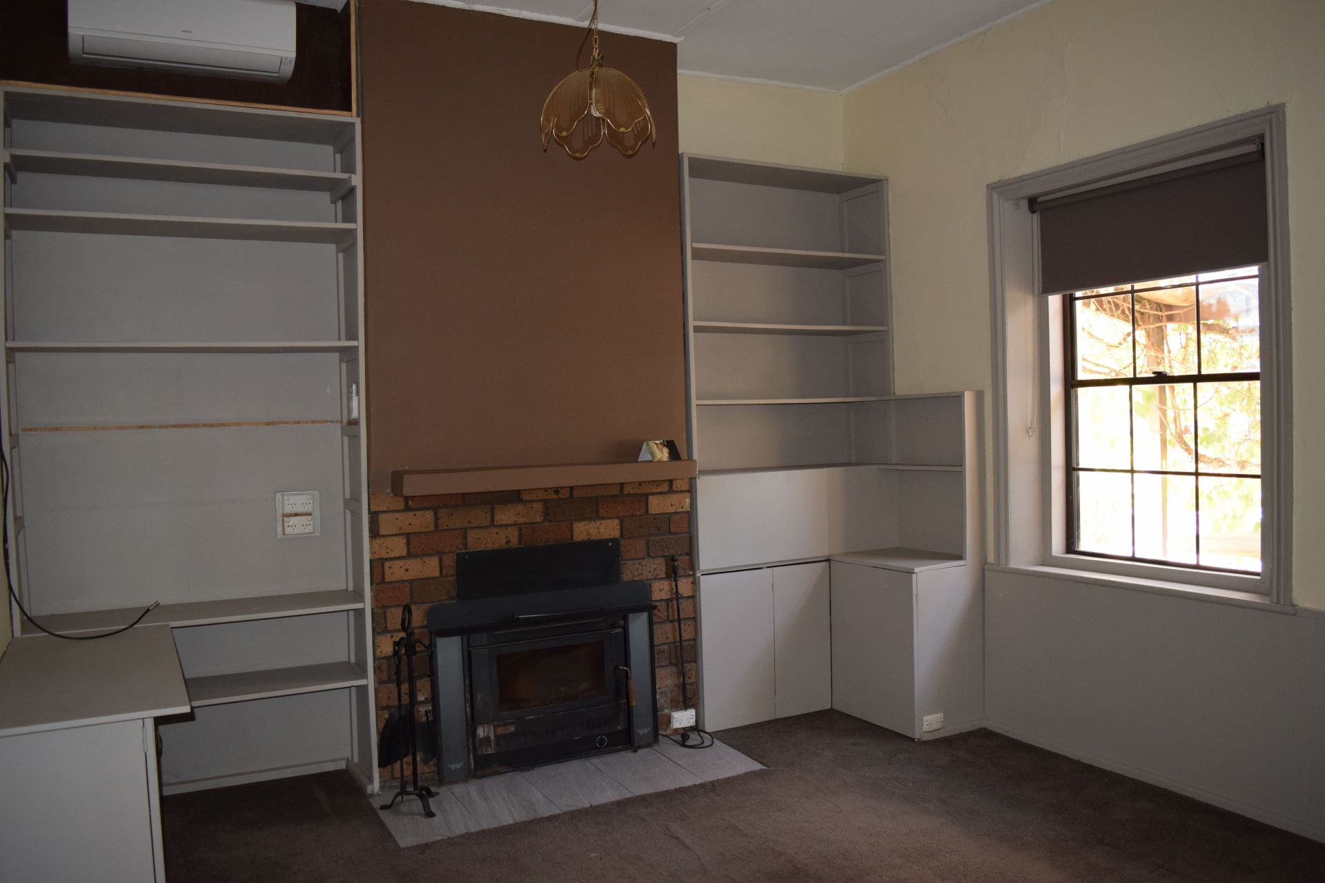 *Modern split system reverse cycle air-conditioning in living room plus wood heater