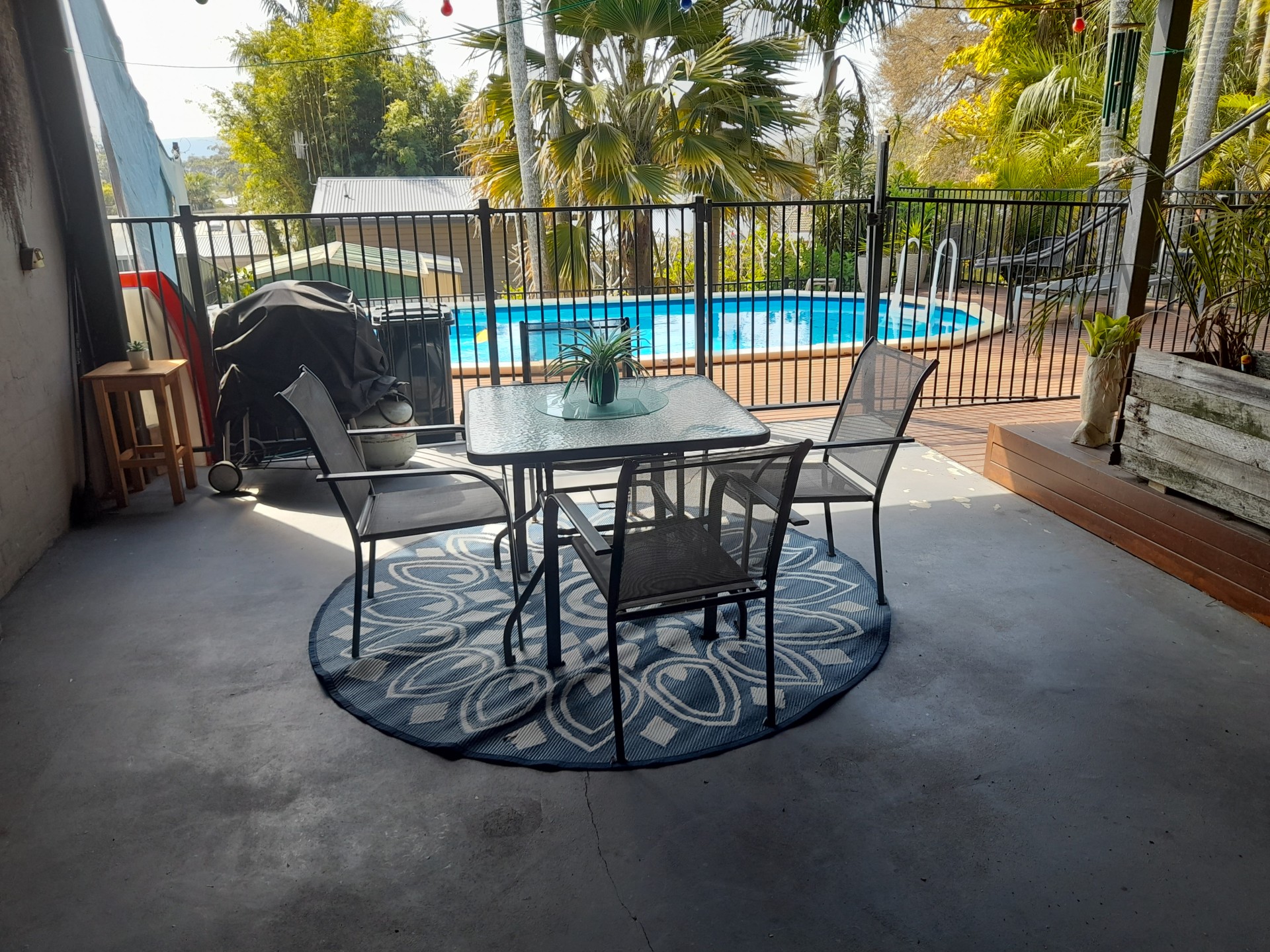 Two bedroom apartment, furnished, bills & wi-fi included, view to pool & leafy yard, quiet street.